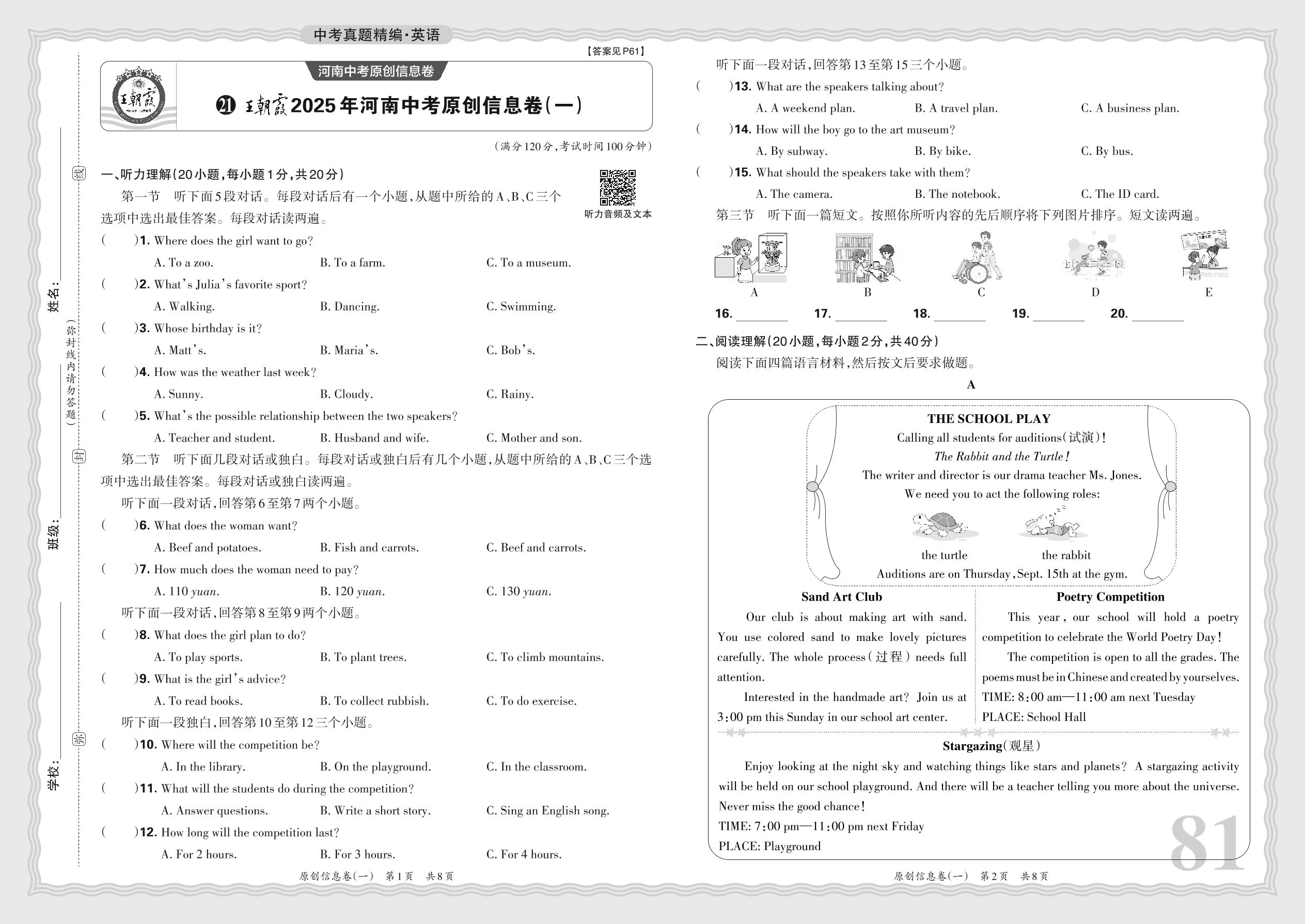 中考英语·王朝霞2025年河南中考原创信息卷(一)【21】