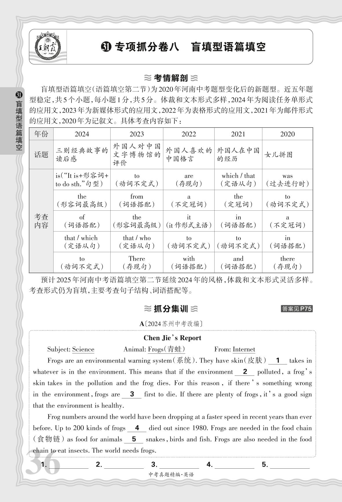 2025河南中考英语·专项抓分卷八 盲填型语篇填空【31】