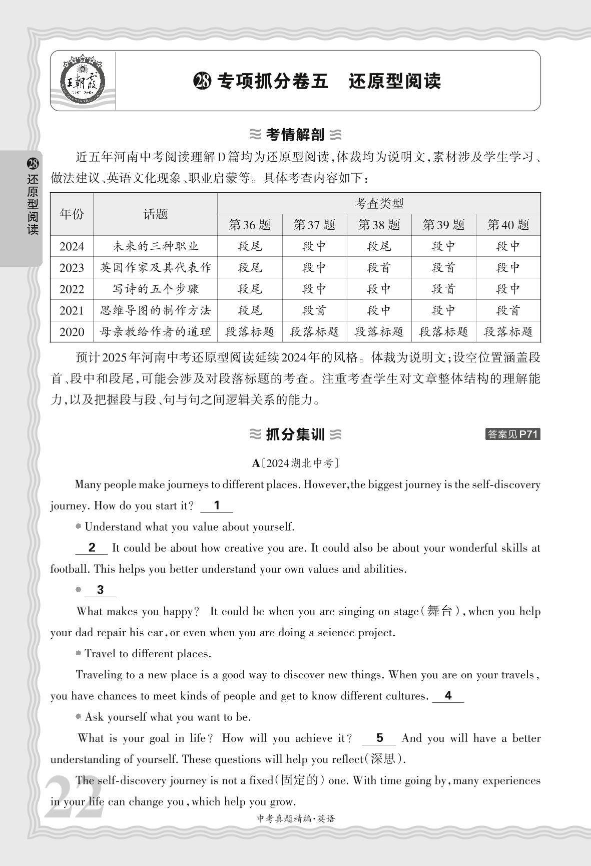 2025河南中考英语·专项抓分卷五 还原型阅读【28】