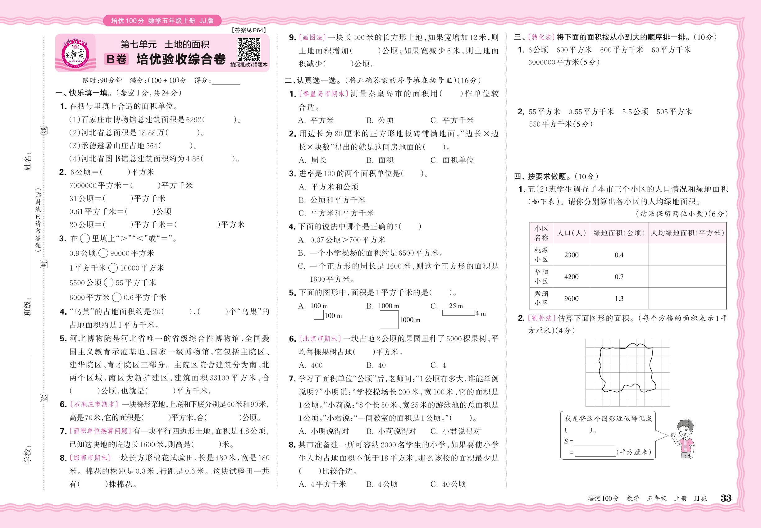 2024秋上册五年级数学冀教版 第七单元B卷 培优验收综合卷
