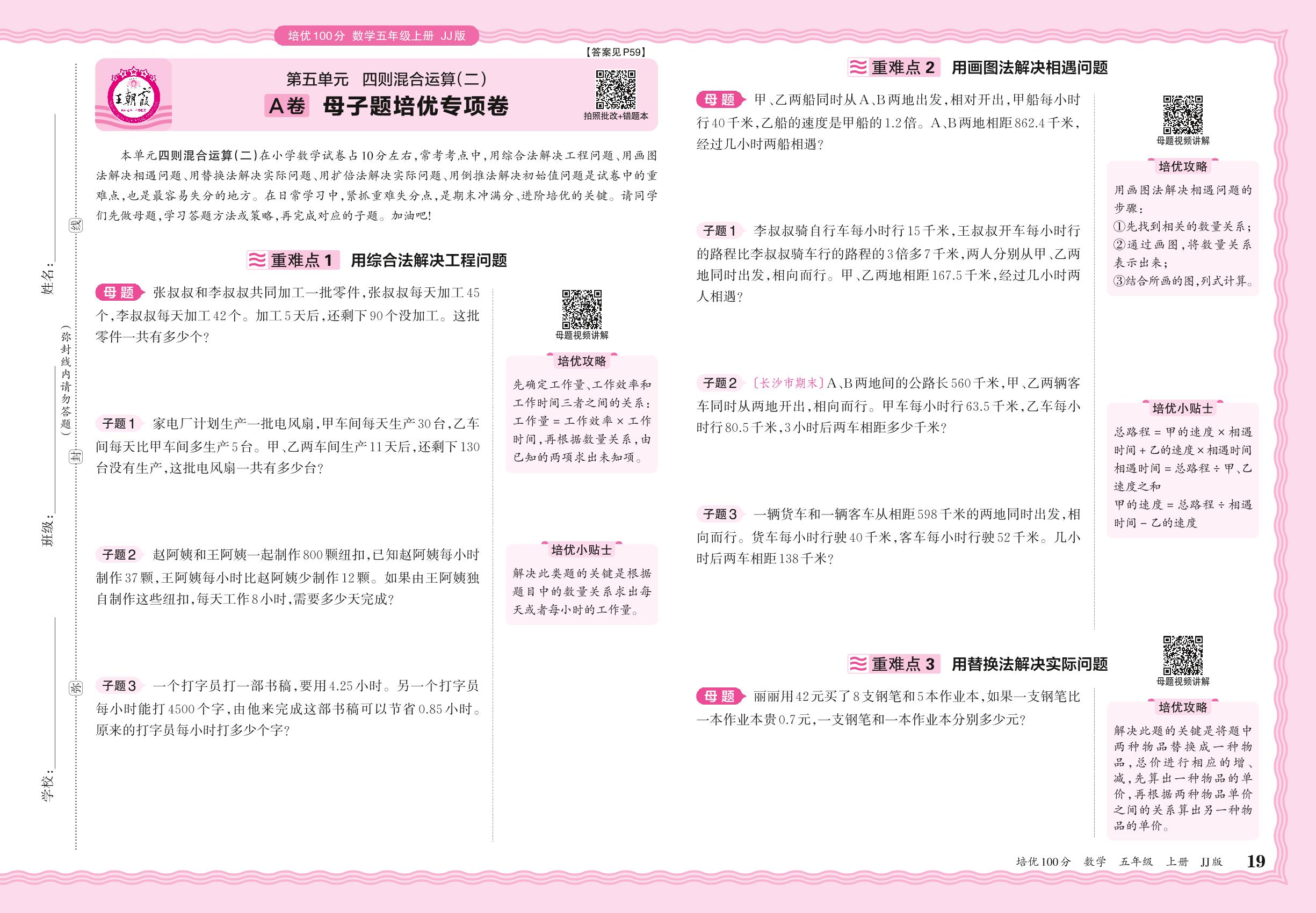 2024秋上册五年级数学冀教版 第五单元A卷 母子题培优专项卷