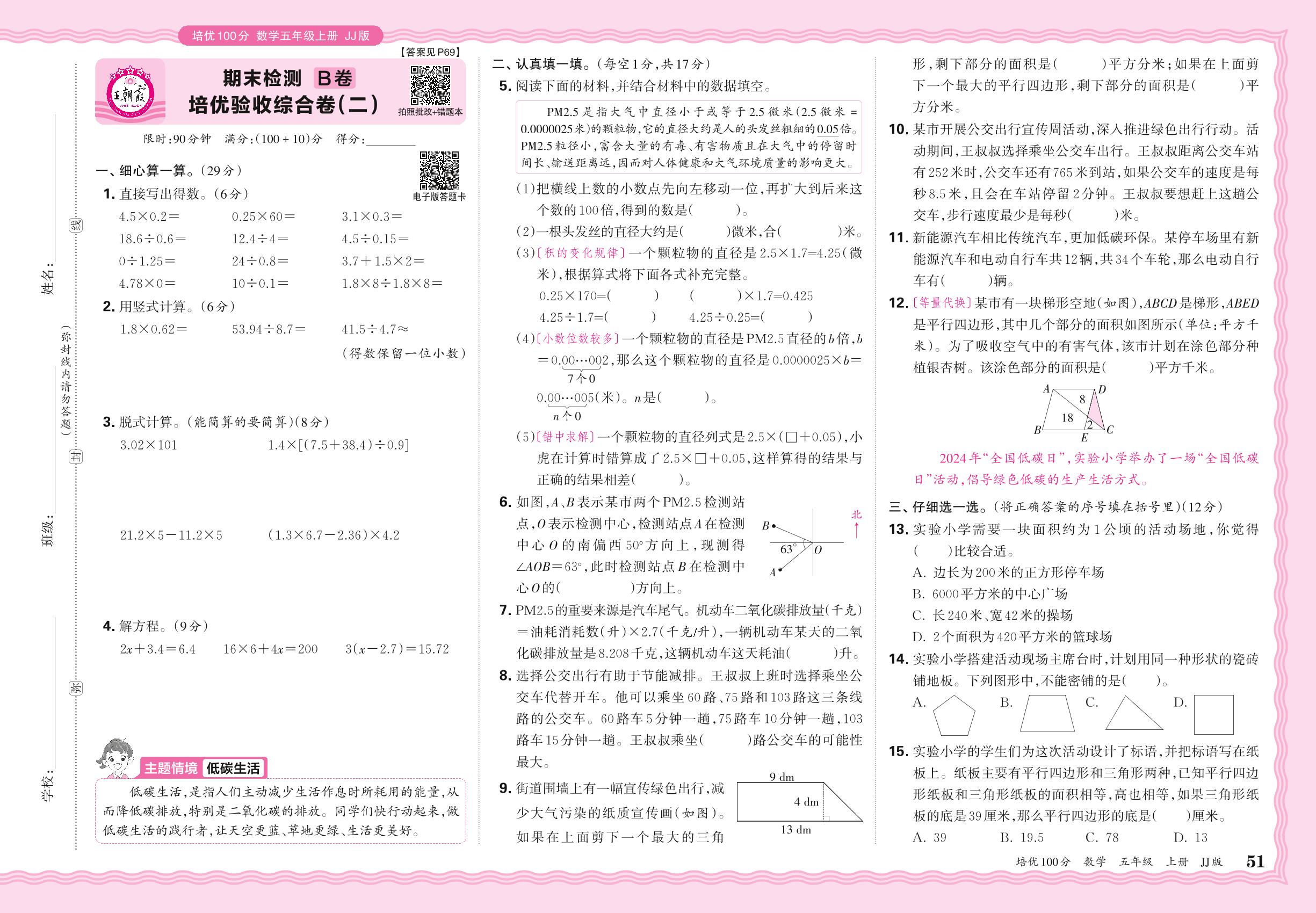 2024秋上册五年级数学冀教版 期末检测B卷 培优验收综合卷(二)