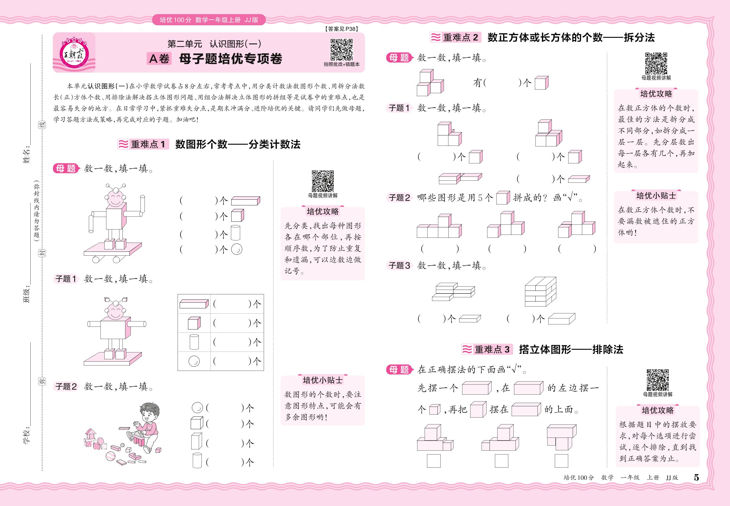 2024秋上册一年级数学冀教版 第二单元A卷 母子題培优专项卷