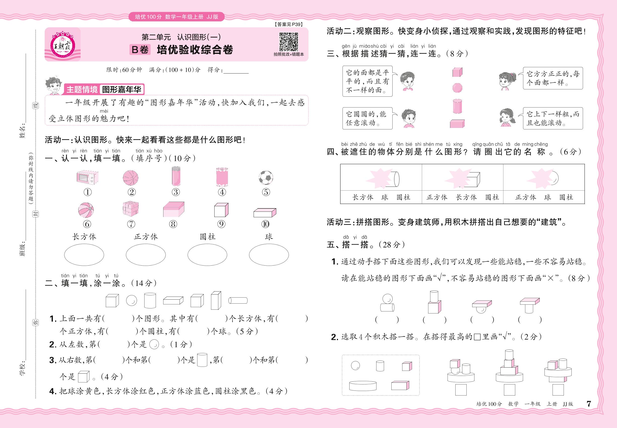 2024秋上册一年级数学冀教版 第二单元B卷 培优验收综合卷