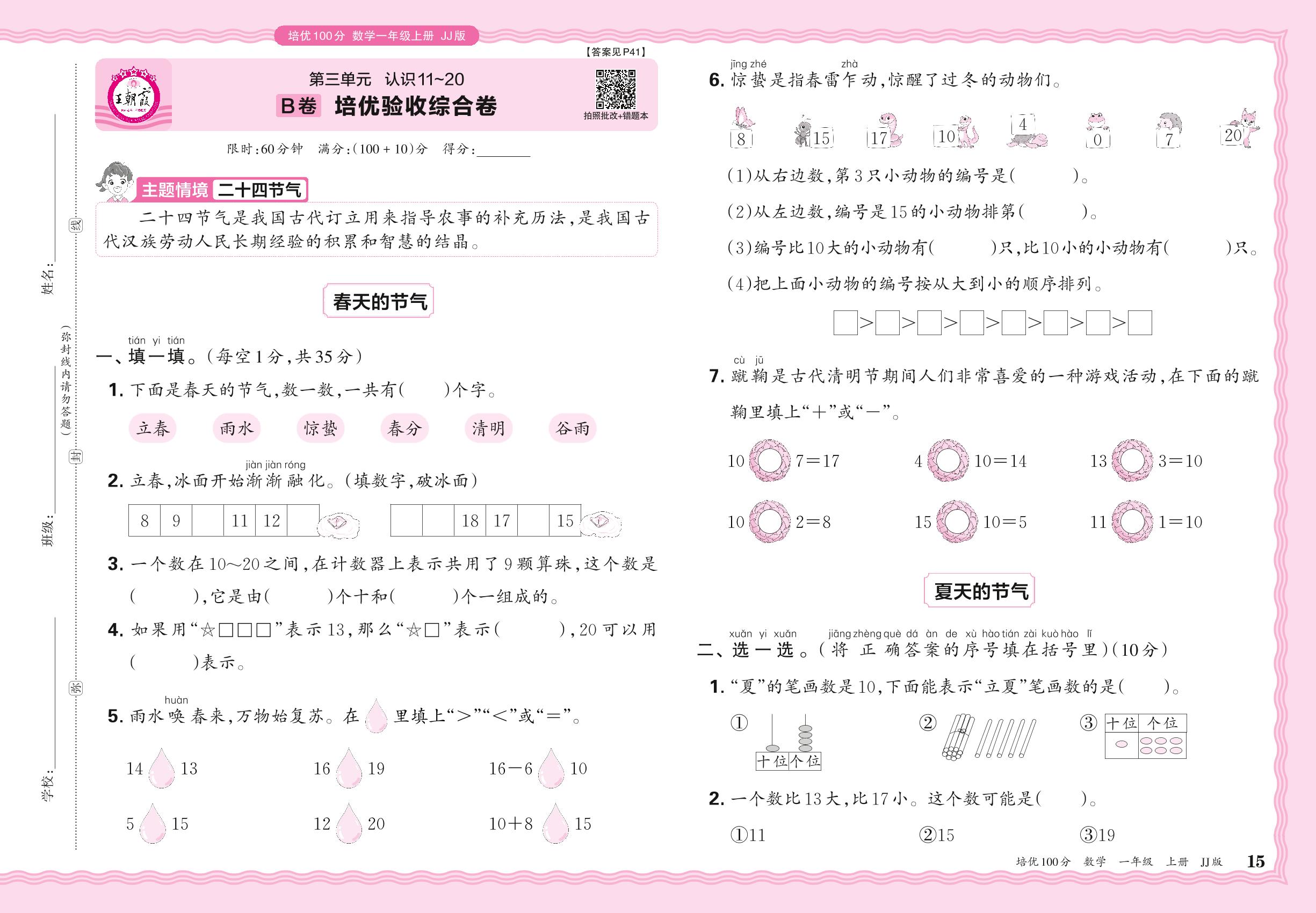 2024秋上册一年级数学冀教版 第三单元B卷 培优验收综合卷