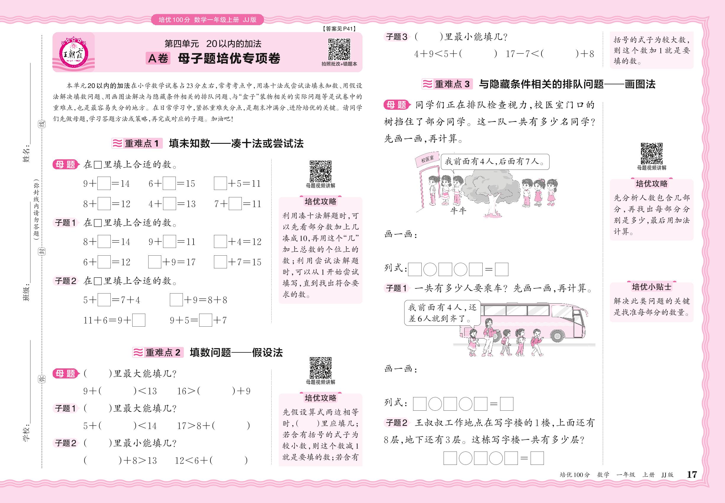 2024秋上册一年级数学冀教版 第四单元A卷 母子题培优专项卷