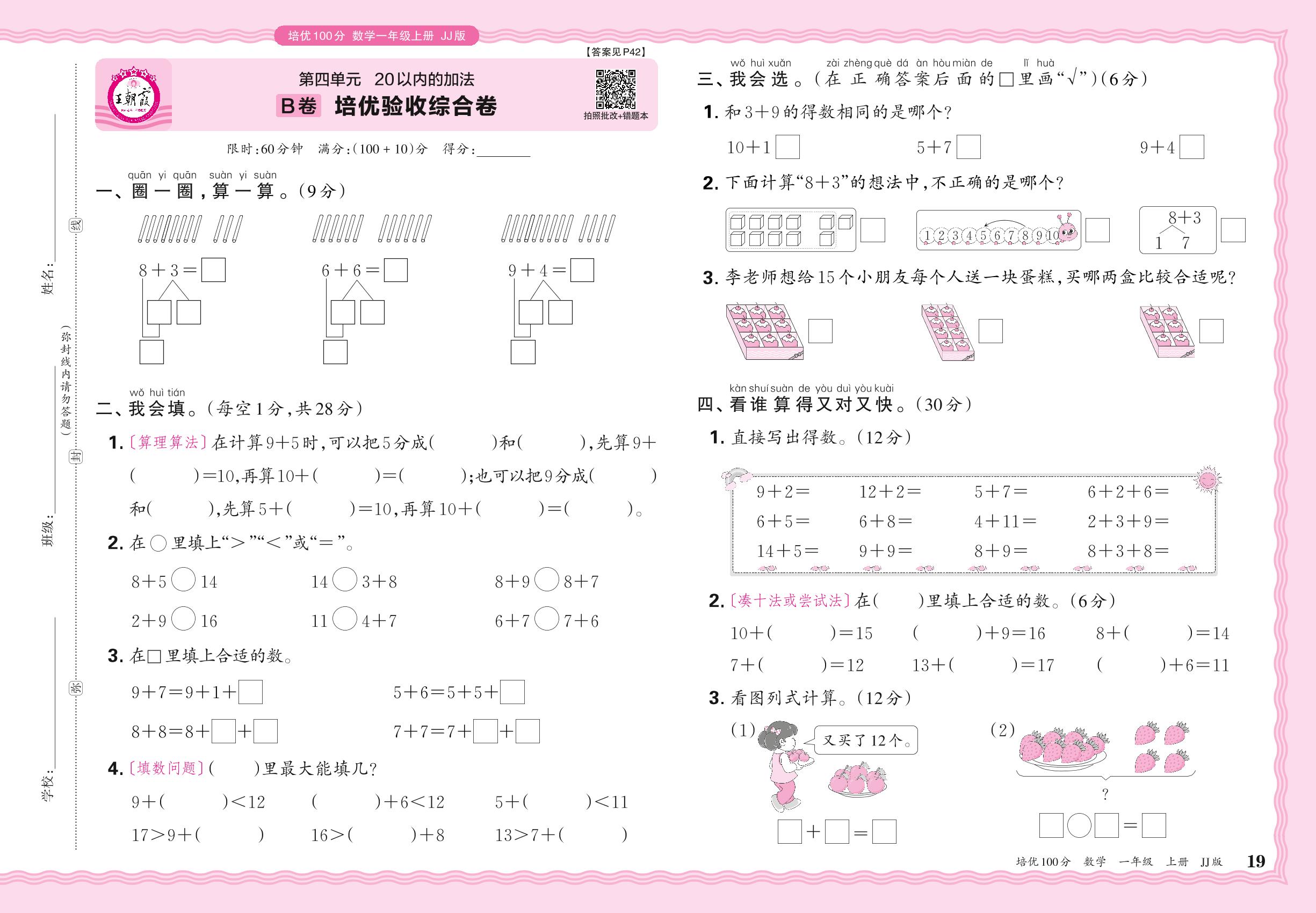 2024秋上册一年级数学冀教版 第四单元B卷 培优验收综合卷