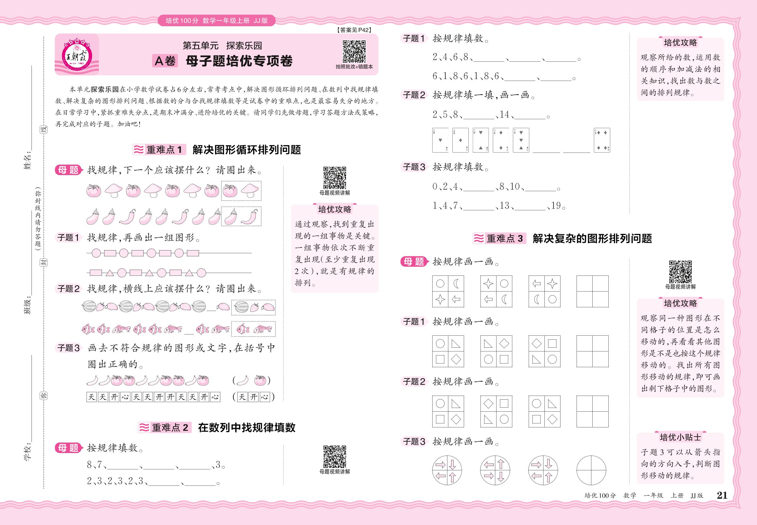 2024秋上册一年级数学冀教版 第五单元A卷 母子題培优专项卷