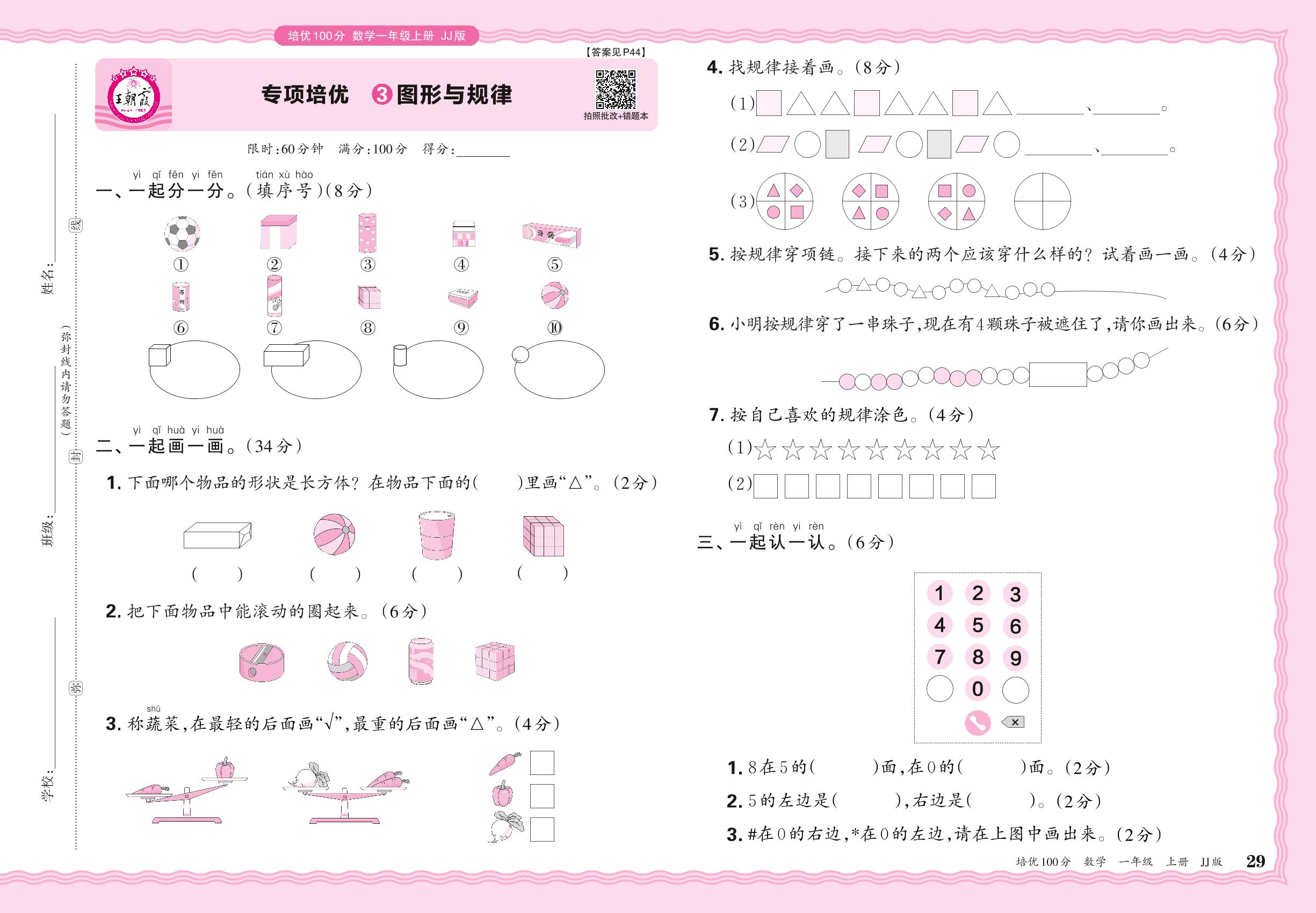 2024秋上册一年级数学冀教版 期末专项卷PY版·图形与规律【3】