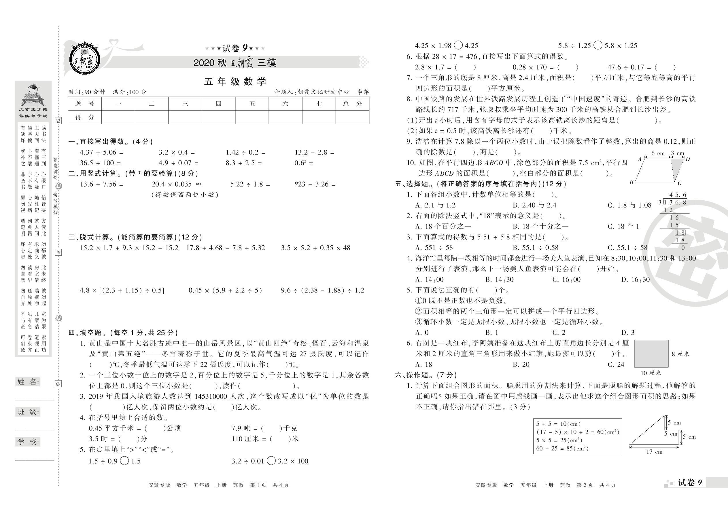 王朝霞期末模拟卷五年级上册数学(苏教版)_R210804164924【9】