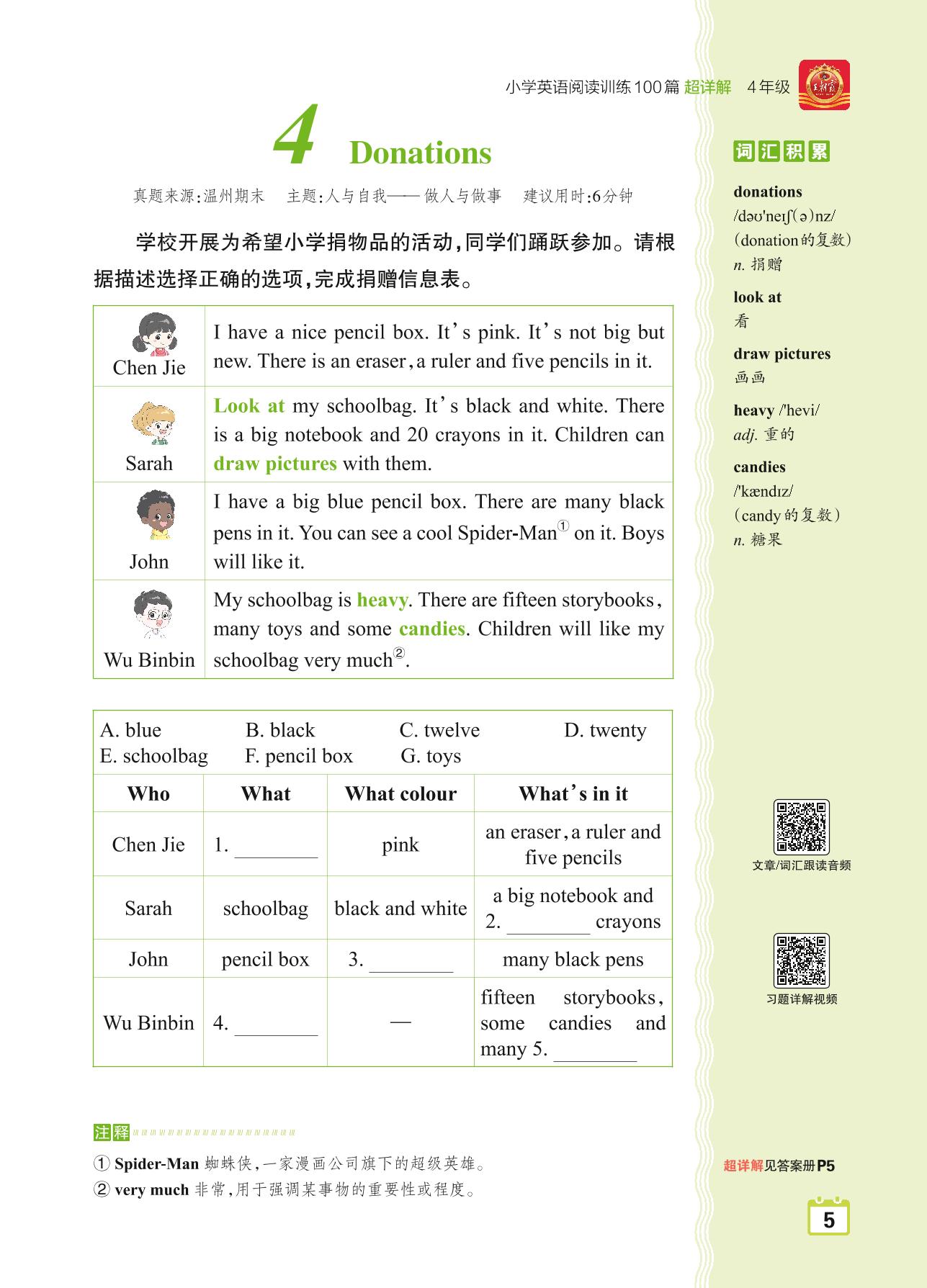 四年级英语阅读超详解 Part 1 青铜篇:4 Donations