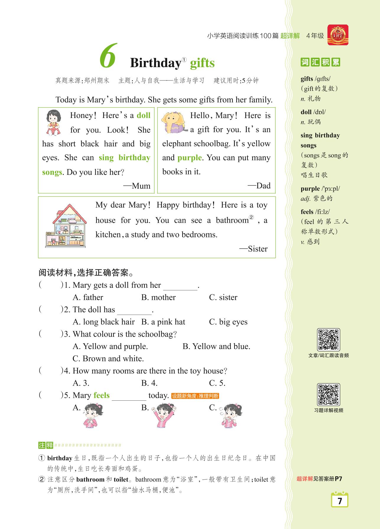 四年级英语阅读超详解 Part 1 青铜篇:6 Birthday gifts