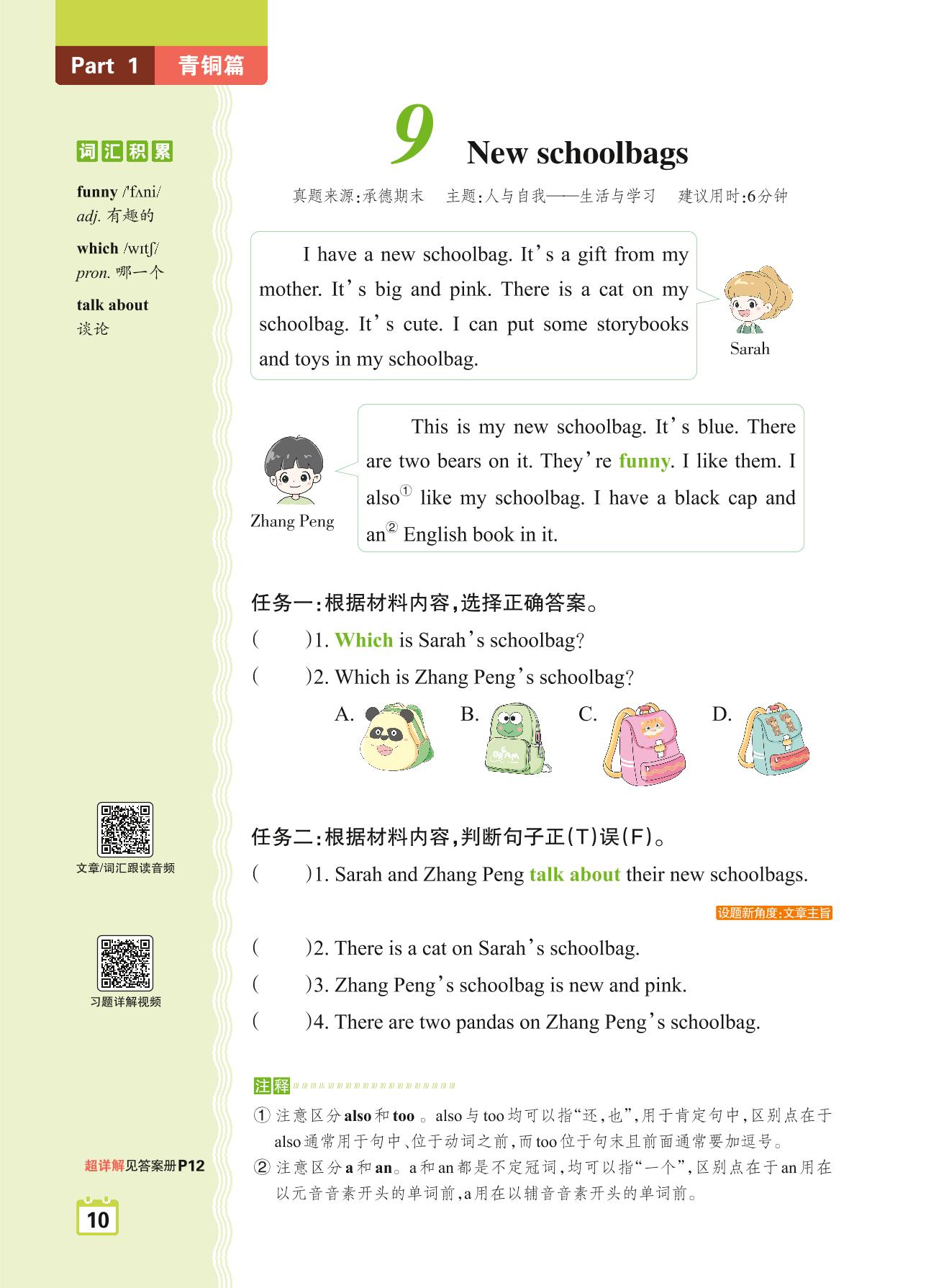 四年级英语阅读超详解 Part 1 青铜篇:9 New schoolbags