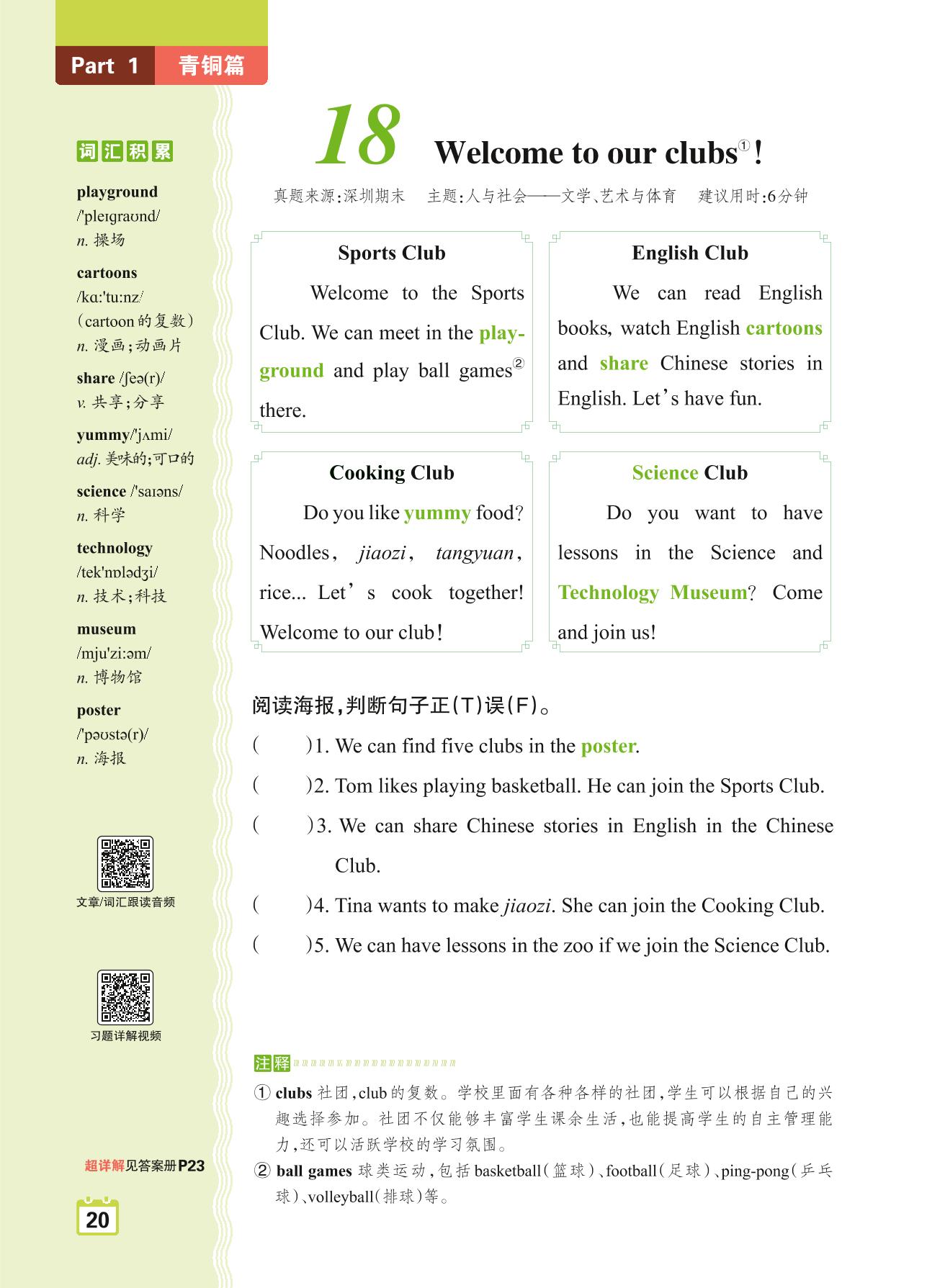 四年级英语阅读超详解 Part 1 青铜篇:18 Welcome to our clubs!