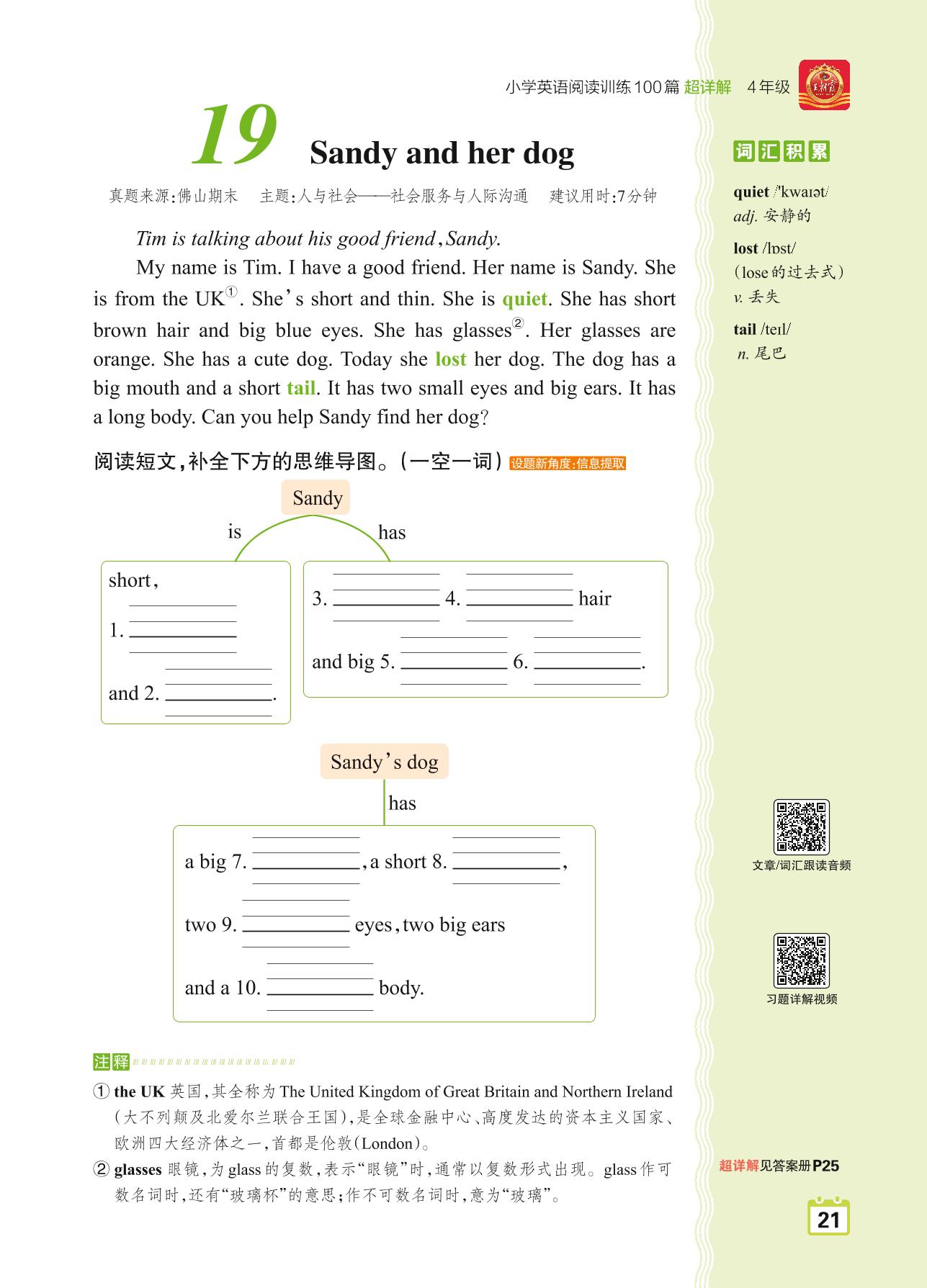 四年级英语阅读超详解 Part 1 青铜篇:19 Sandy and her dog