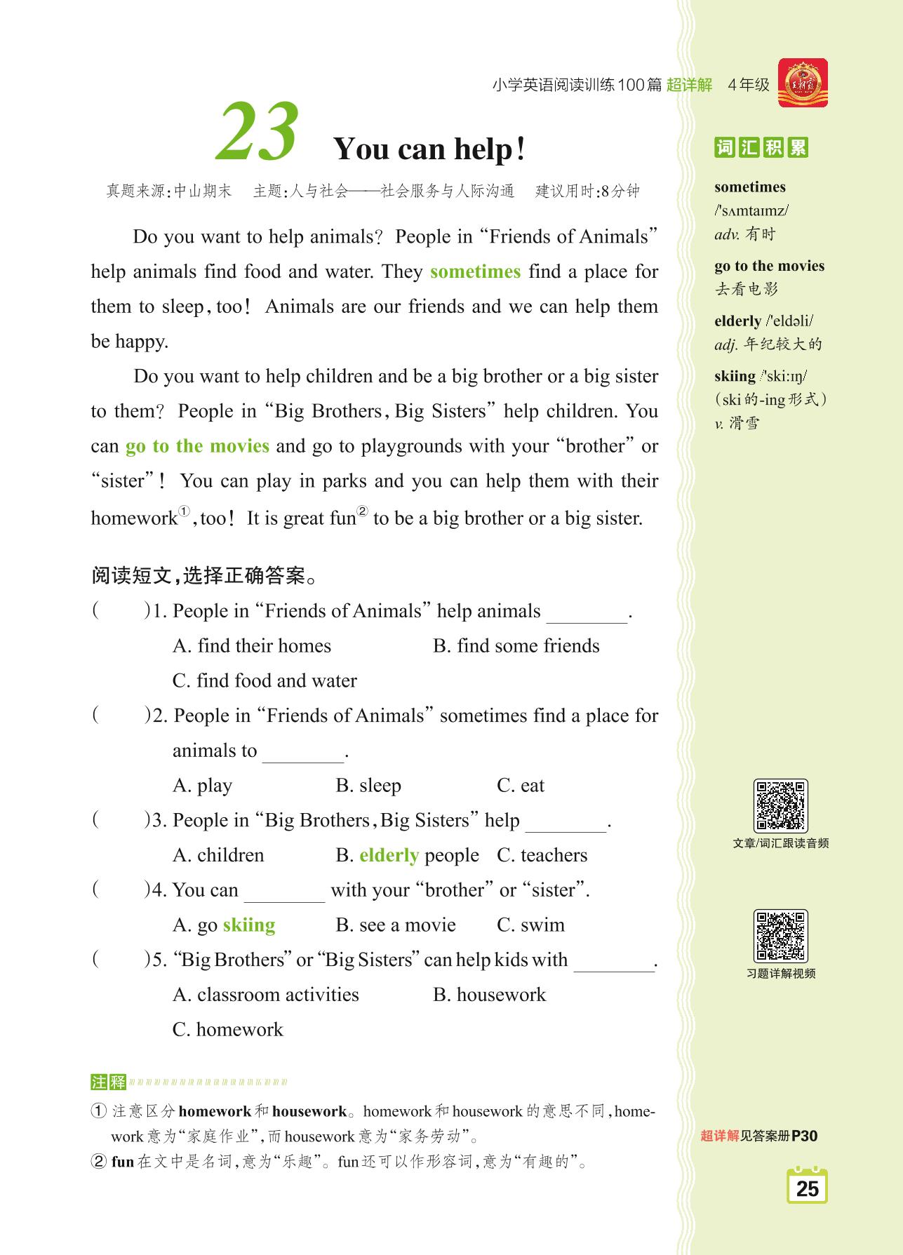 四年级英语阅读超详解 Part 1 青铜篇:23 You can help!