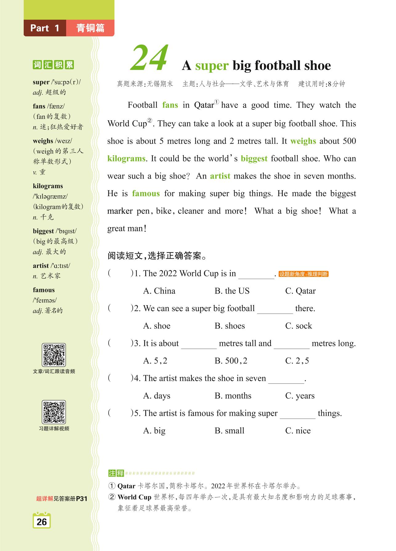 四年级英语阅读超详解 Part 1 青铜篇:24 A super big football shoe