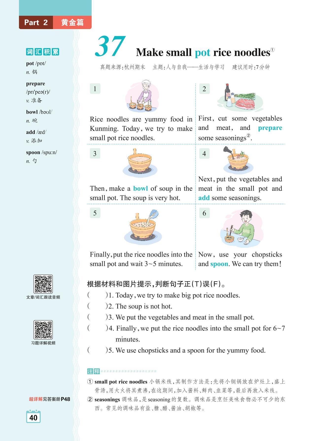 四年级英语阅读超详解 Part 2 黄金篇:37 Make small pot rice noodles
