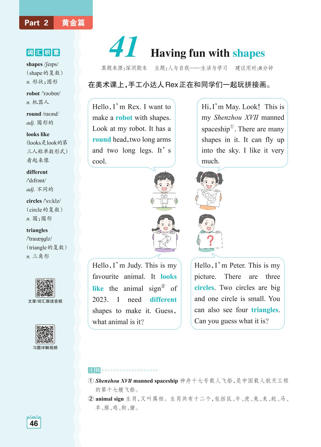 四年级英语阅读超详解 Part 2 黄金篇:41 Having fun with shapes