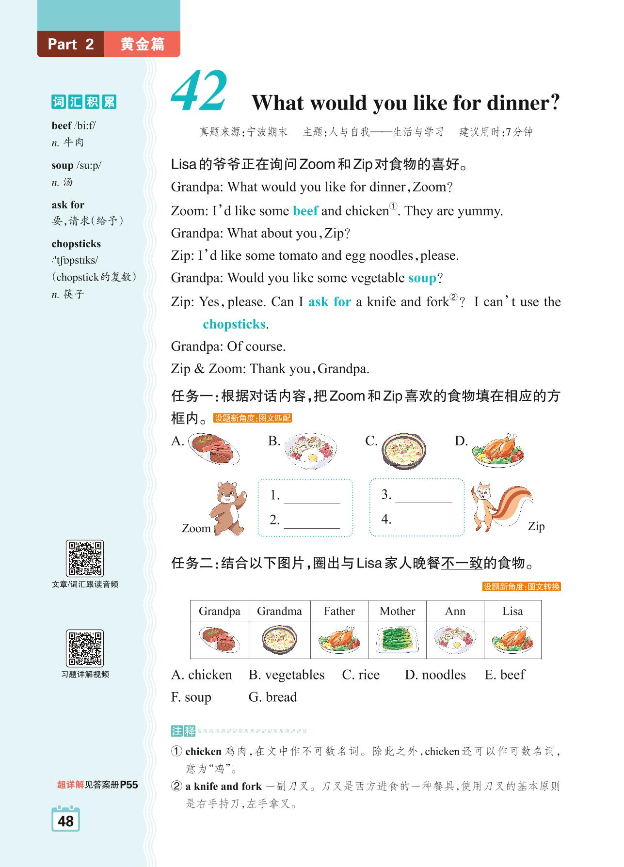 四年级英语阅读超详解 Part 2 黄金篇:42 What would you like for dinner?