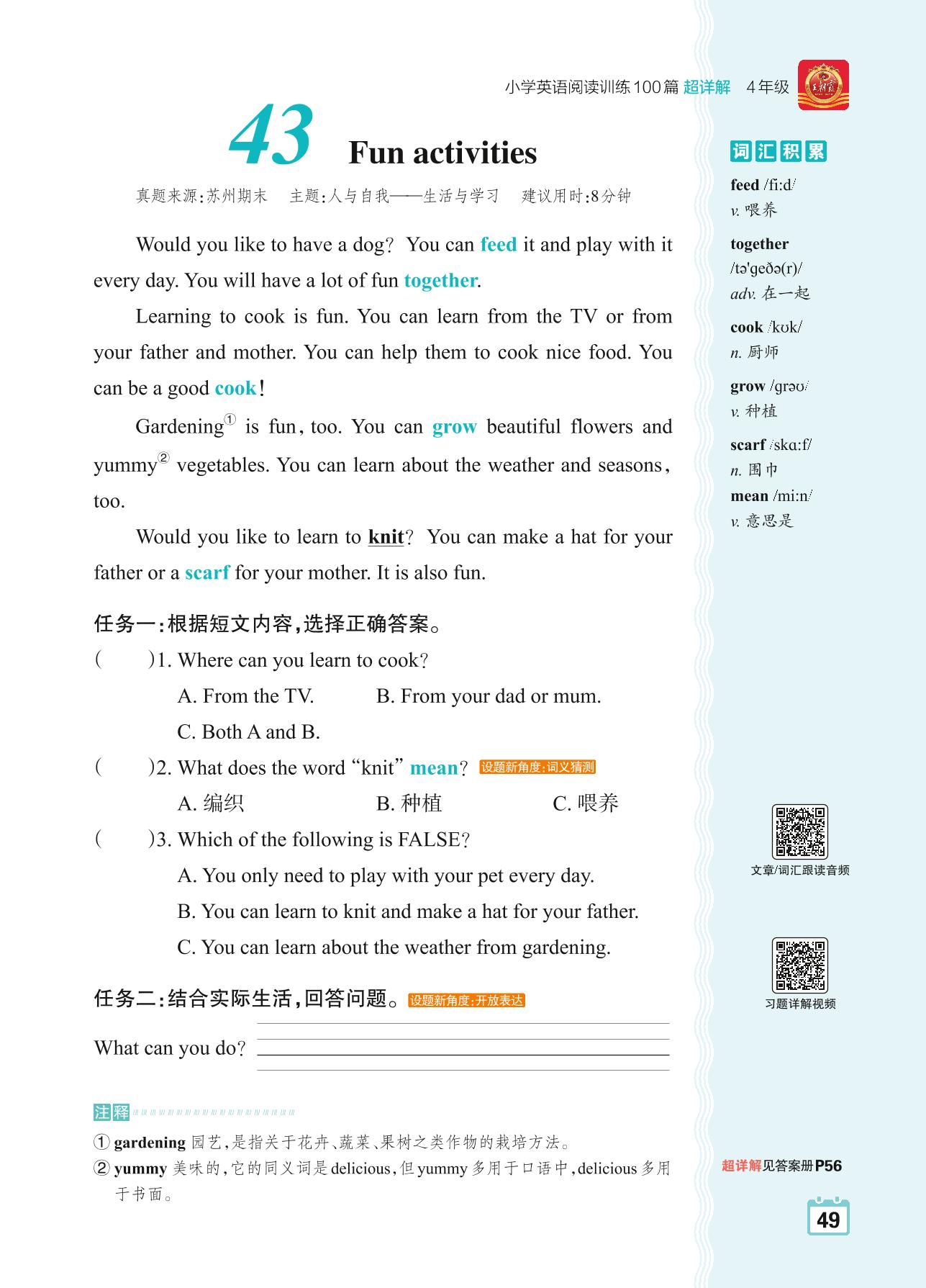 四年级英语阅读超详解 Part 2 黄金篇:43 Fun activities