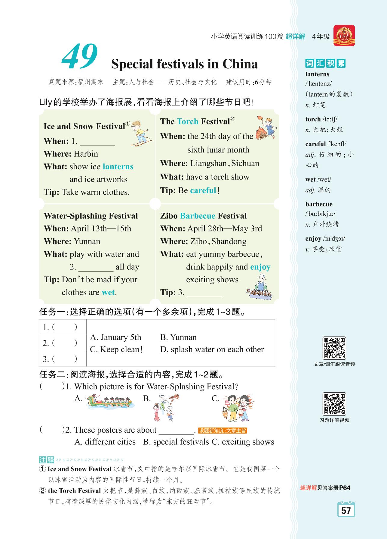 四年级英语阅读超详解 Part 2 黄金篇:49 Special festivals in China