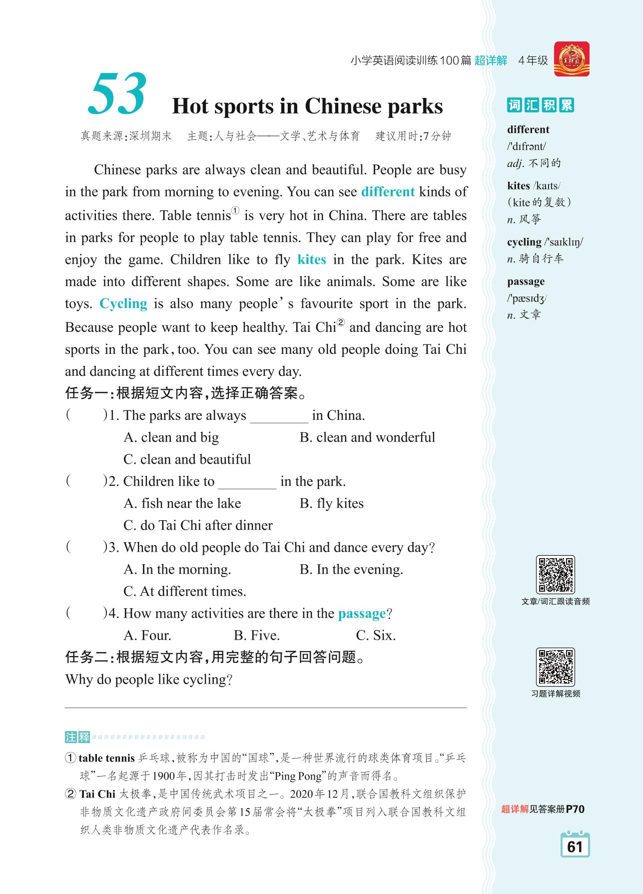 四年级英语阅读超详解 Part 2 黄金篇:53 Hot sports in Chinese parks
