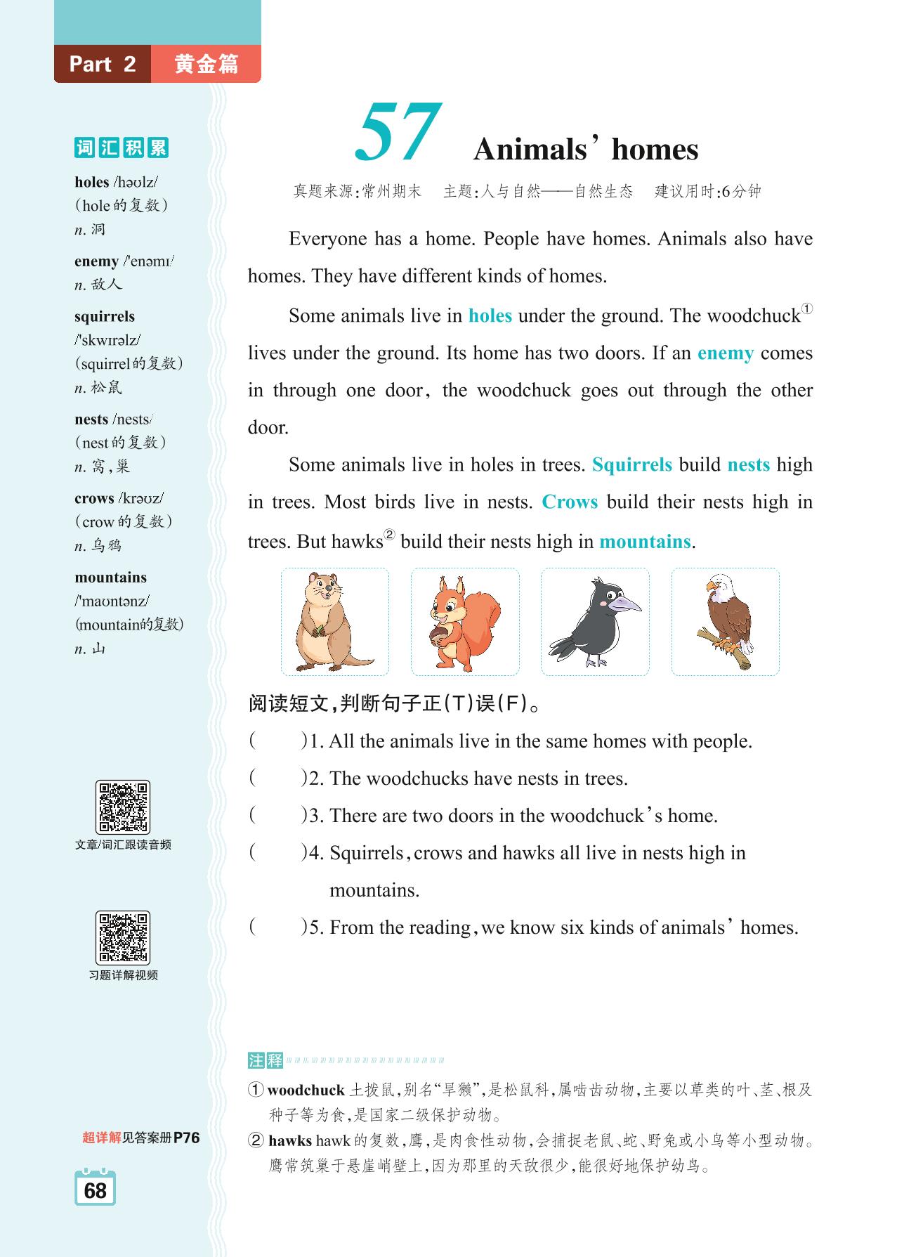 四年级英语阅读超详解 Part 2 黄金篇:57 Animals' homes