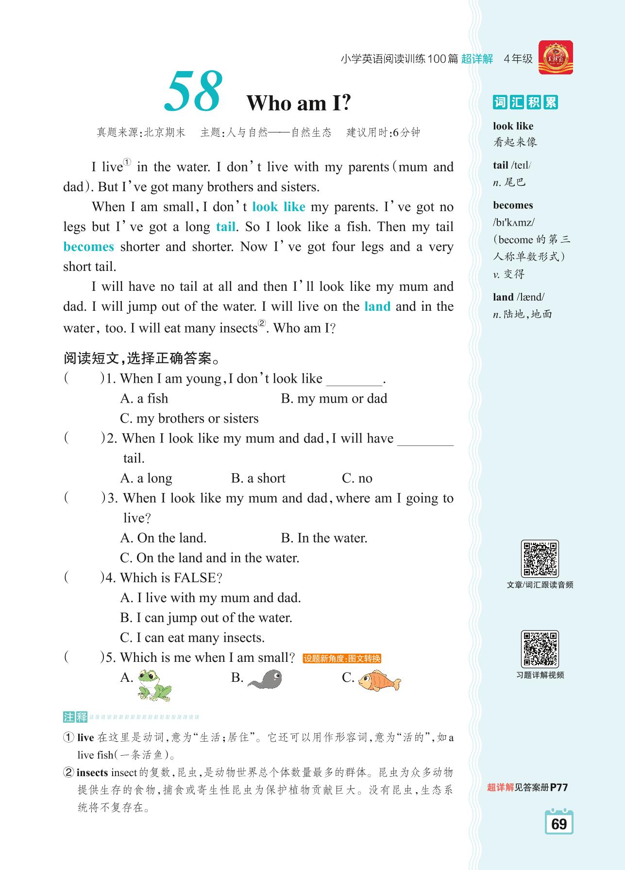 四年级英语阅读超详解 Part 2 黄金篇:58 Who am I?