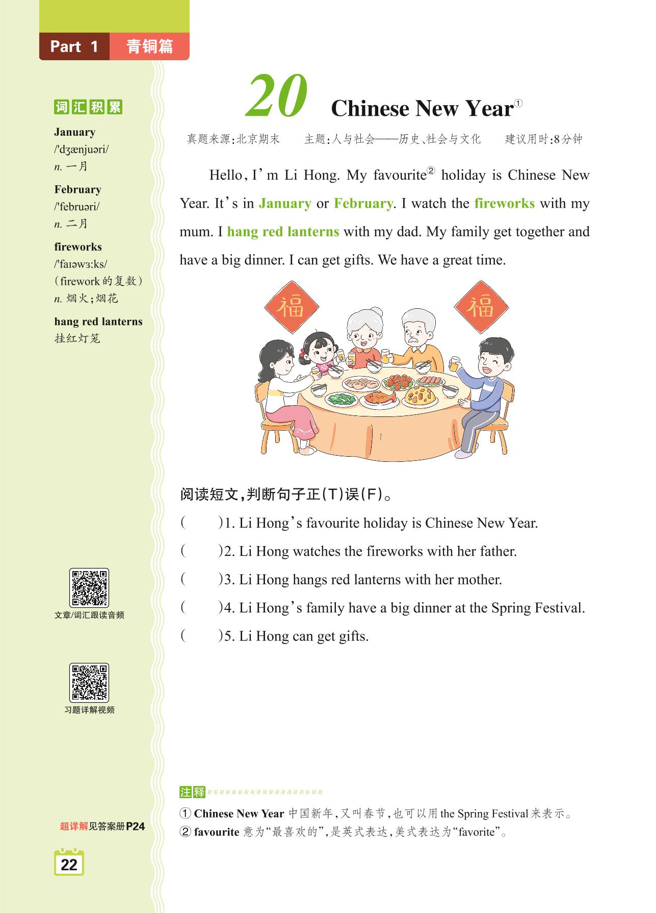 三年级英语阅读超详解 Part1 青铜篇:20 Chinese New Year
