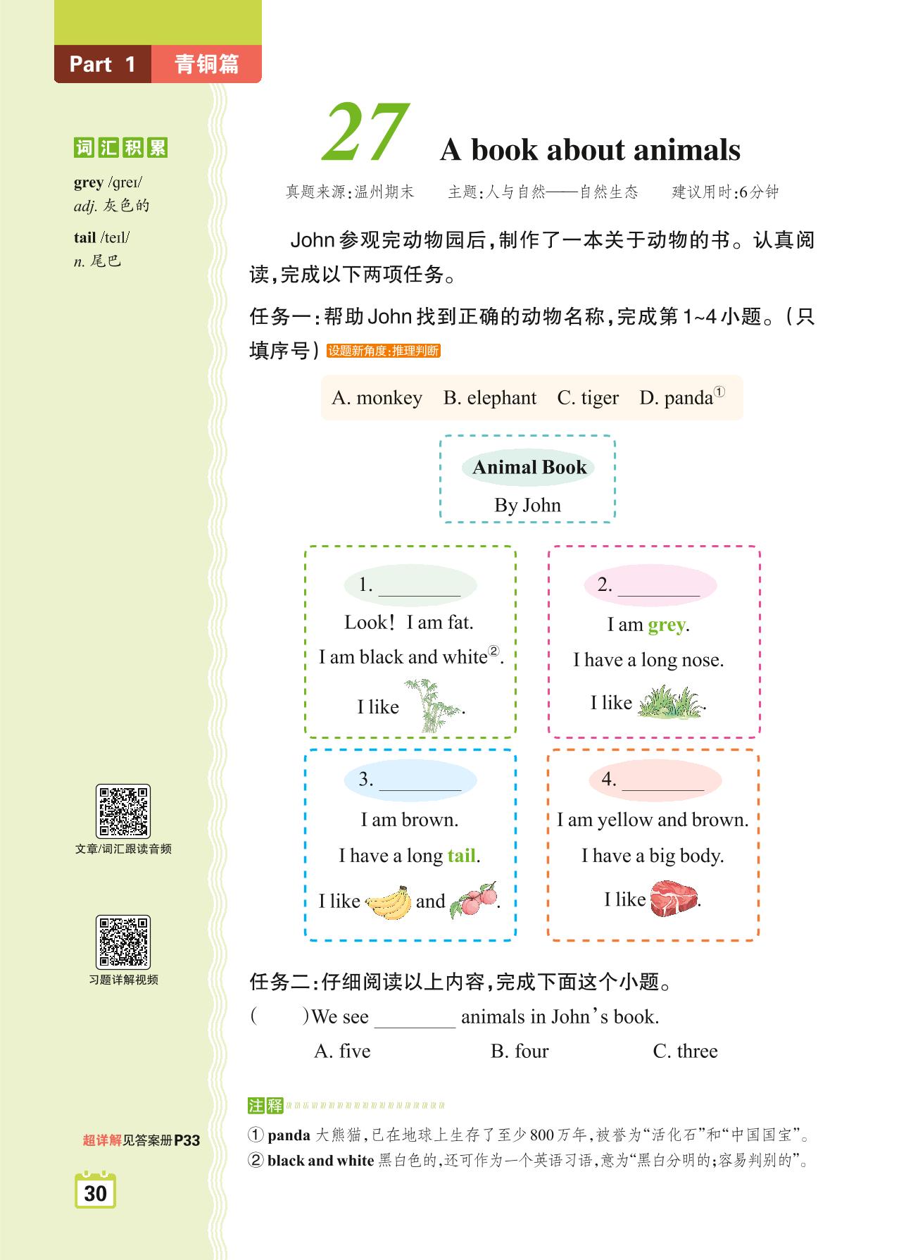 三年级英语阅读超详解 Part1 青铜篇:27 A book about animals