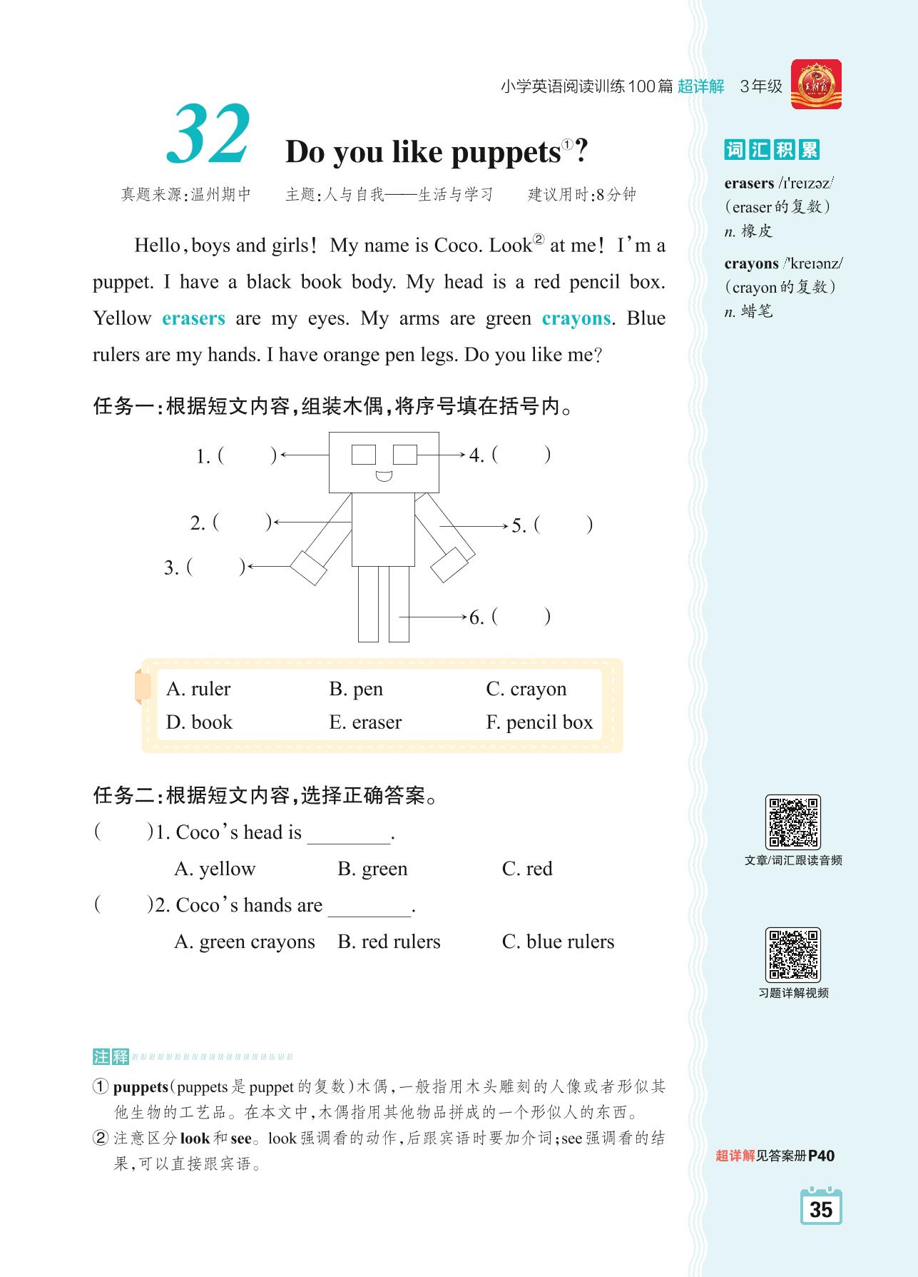 三年级英语阅读超详解 Part2 黄金篇:32 Do you like puppets?