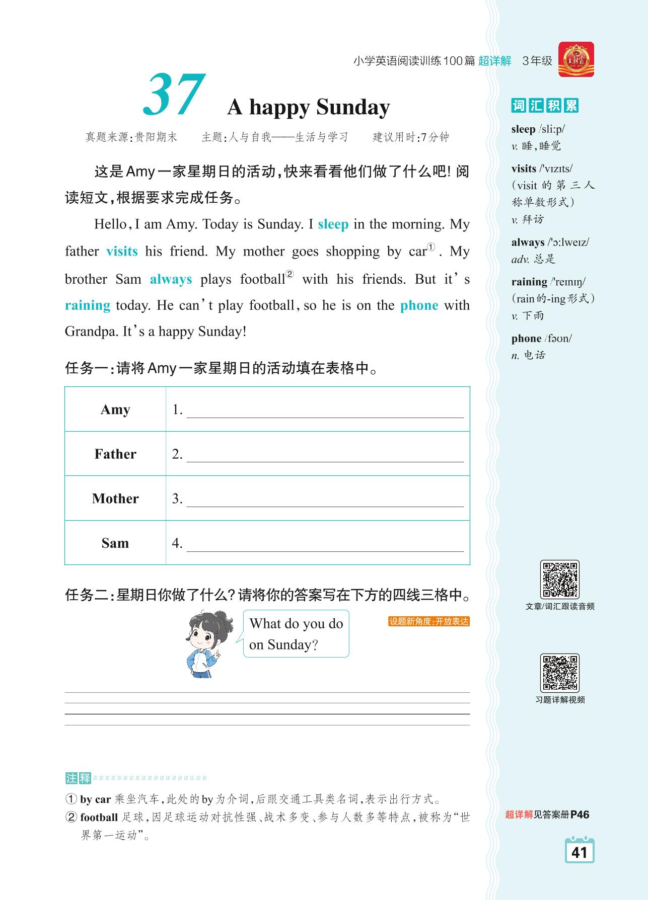 三年级英语阅读超详解 Part2 黄金篇:37 A happy Sunday