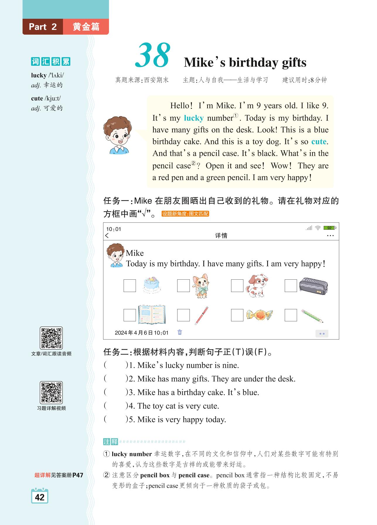 三年级英语阅读超详解 Part2 黄金篇:38 Mike's birthday gifts