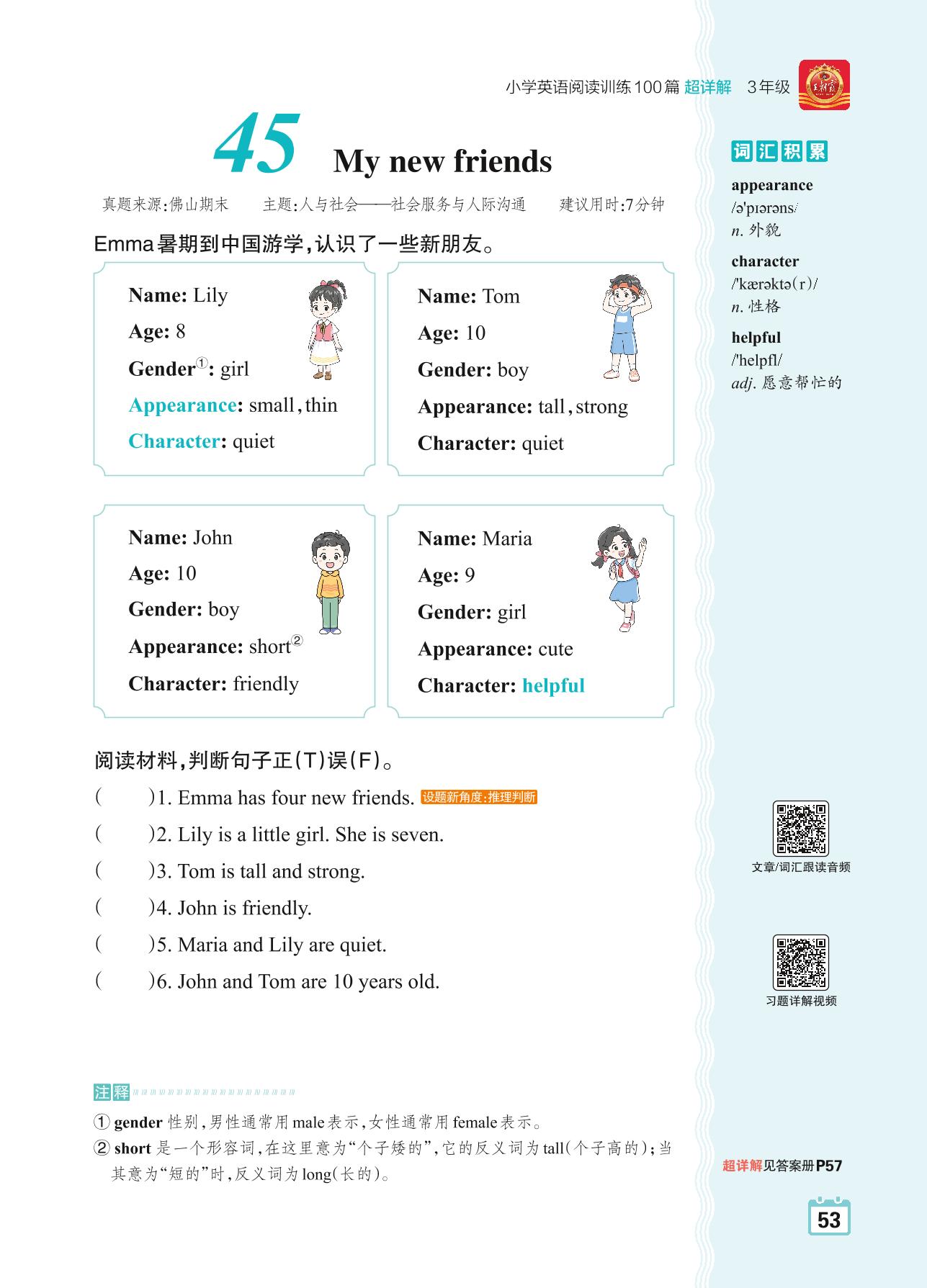 三年级英语阅读超详解 Part2 黄金篇:45 My new friends