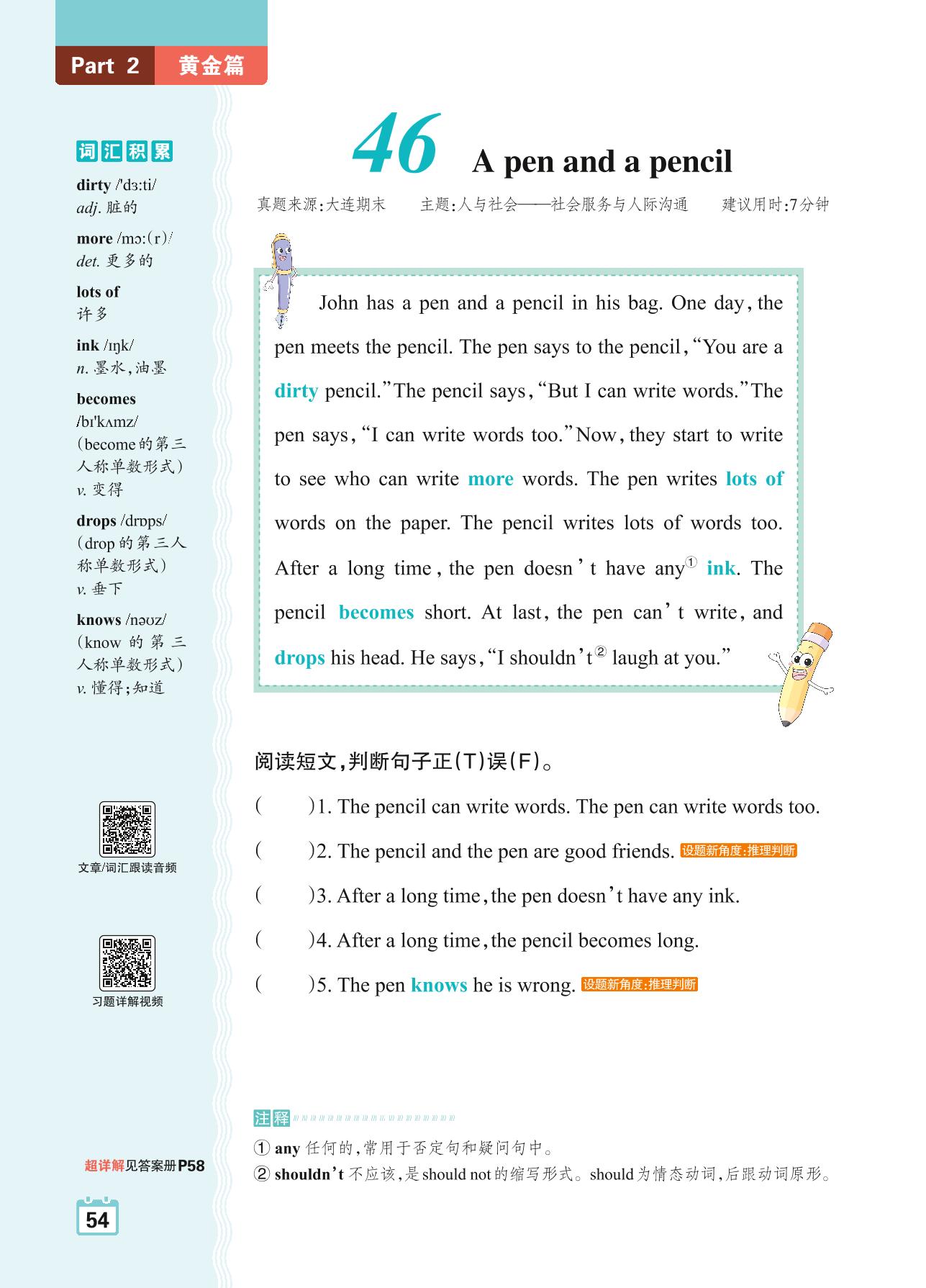 三年级英语阅读超详解 Part2 黄金篇:46 A pen and a pencil