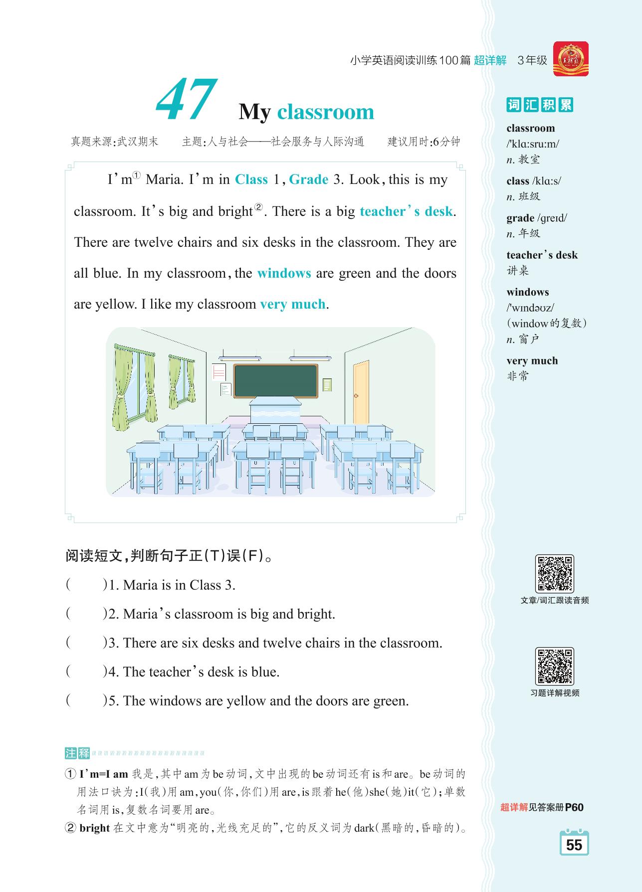 三年级英语阅读超详解 Part2 黄金篇:47 My classroom
