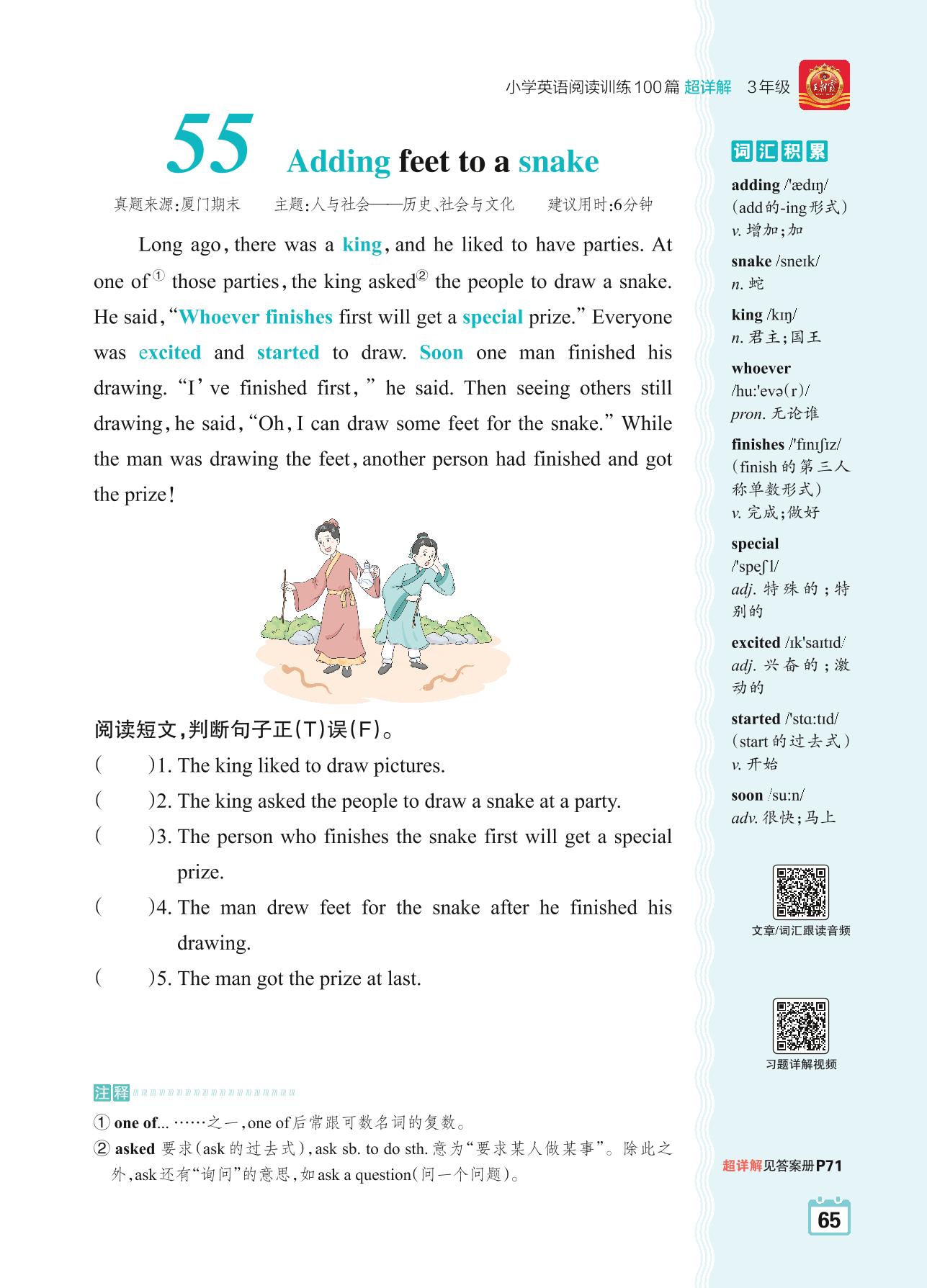 三年级英语阅读超详解 Part2 黄金篇:55 Adding feet to a snake