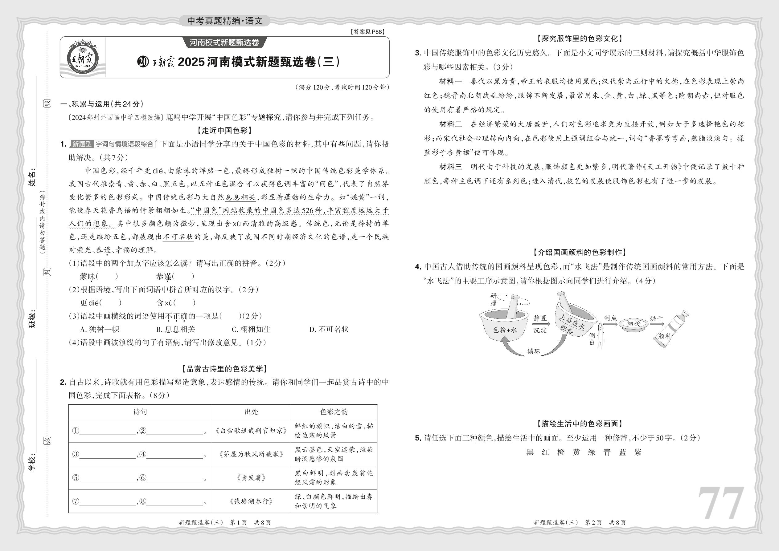 中考语文·王朝霞2025河南模式新题甄选卷(三)【20】
