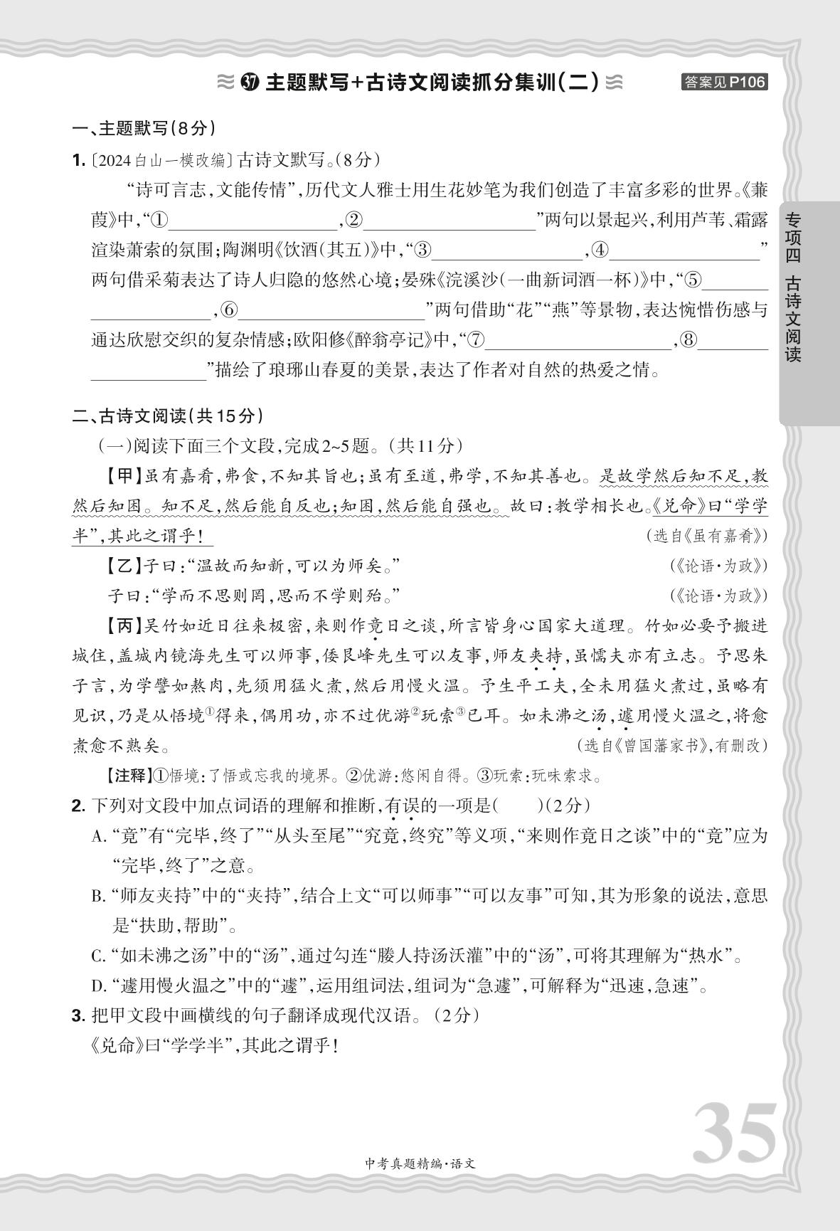 2025河南中考语文·专项四 主题默写加号古诗文阅读抓分集训(二)【37】