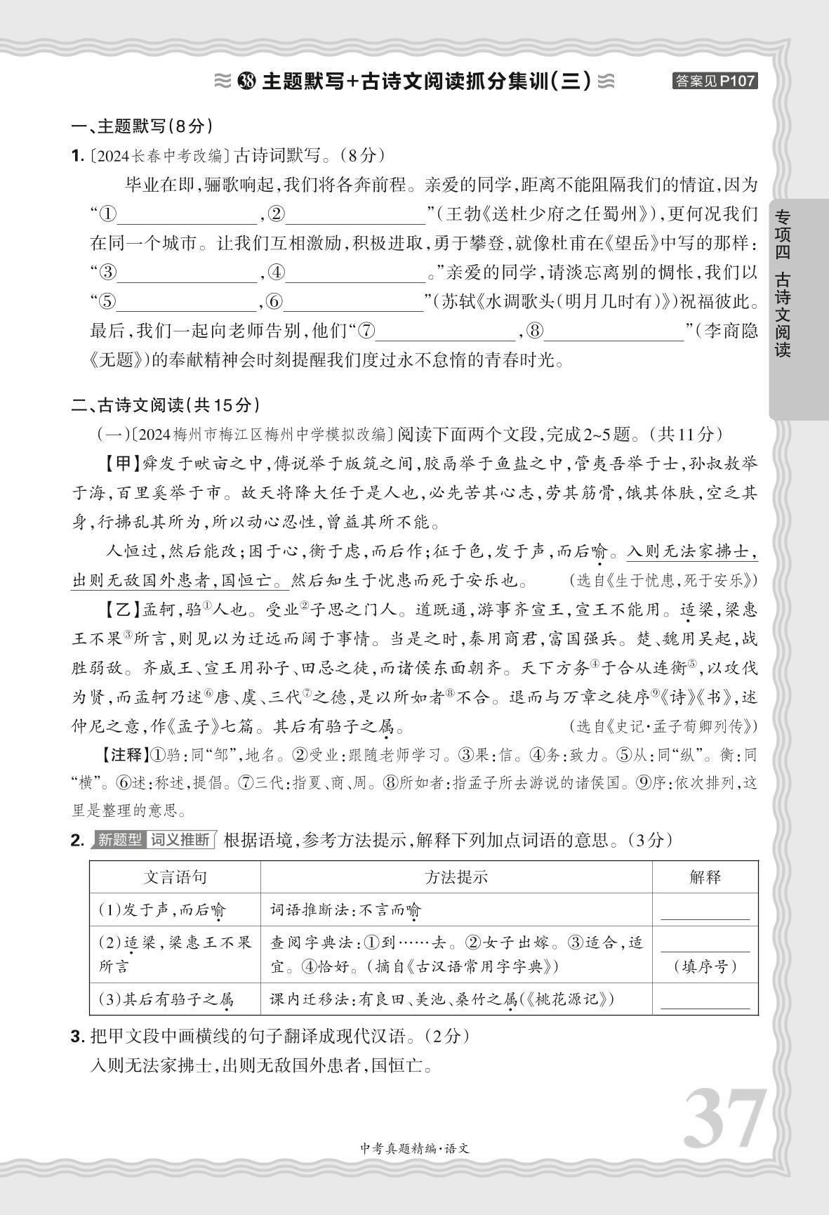 2025河南中考语文·专项四 主题默写加号古诗文阅读抓分集训(三)【38】