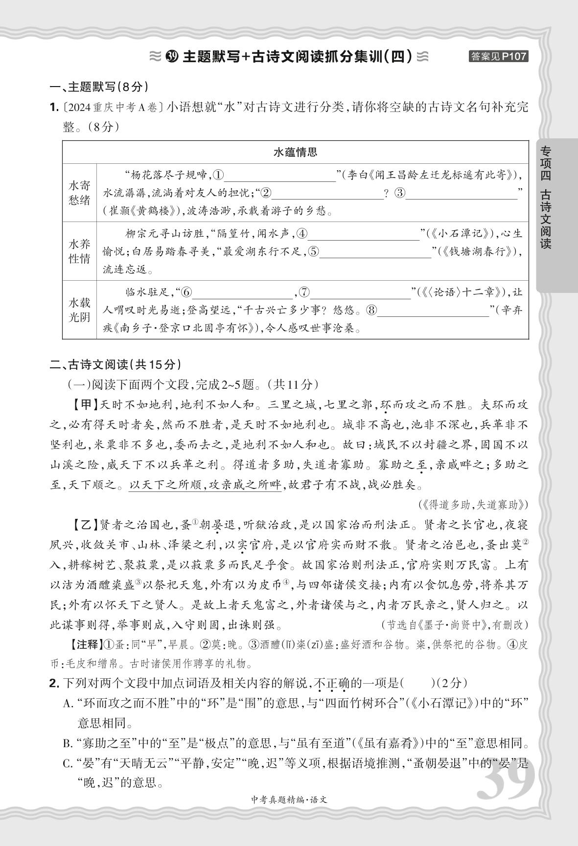 2025河南中考语文·专项四 主题默写加号古诗文阅读抓分集训(四)【39】