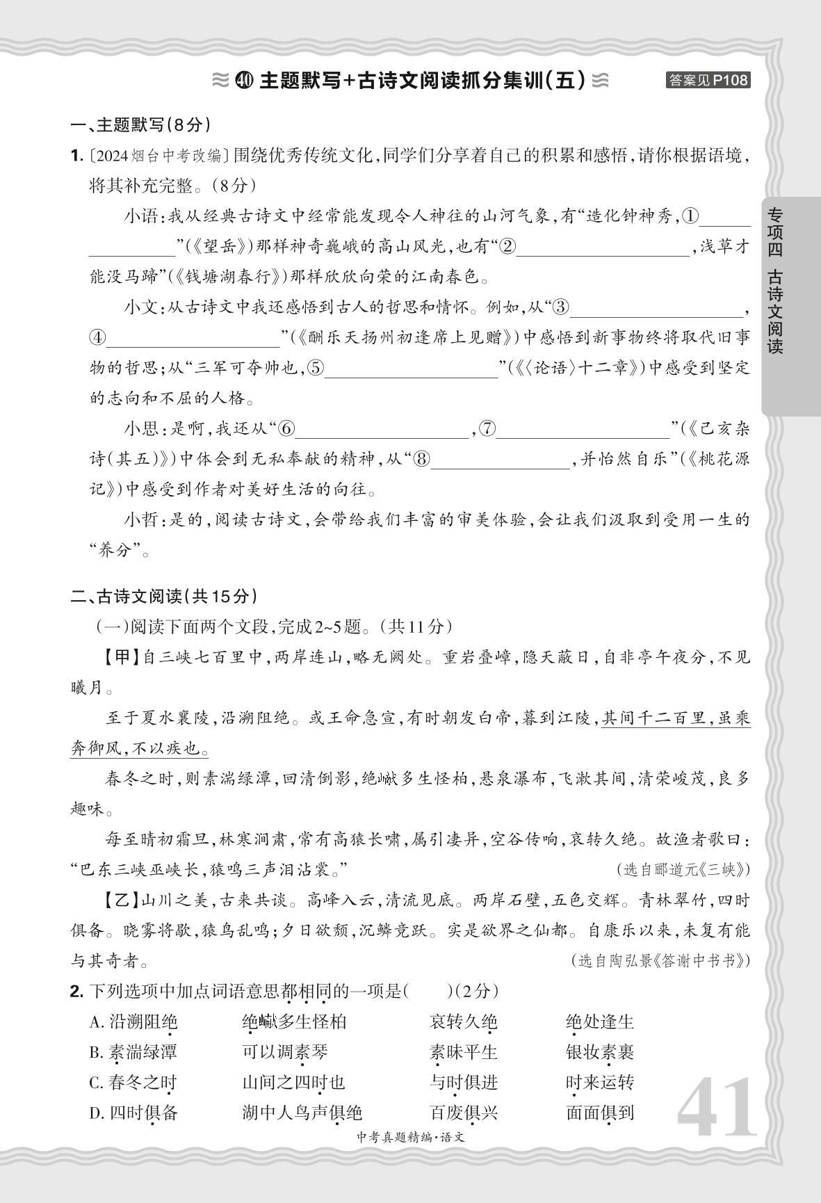 2025河南中考语文·专项四 主题默写加号古诗文阅读抓分集训(五)【40】