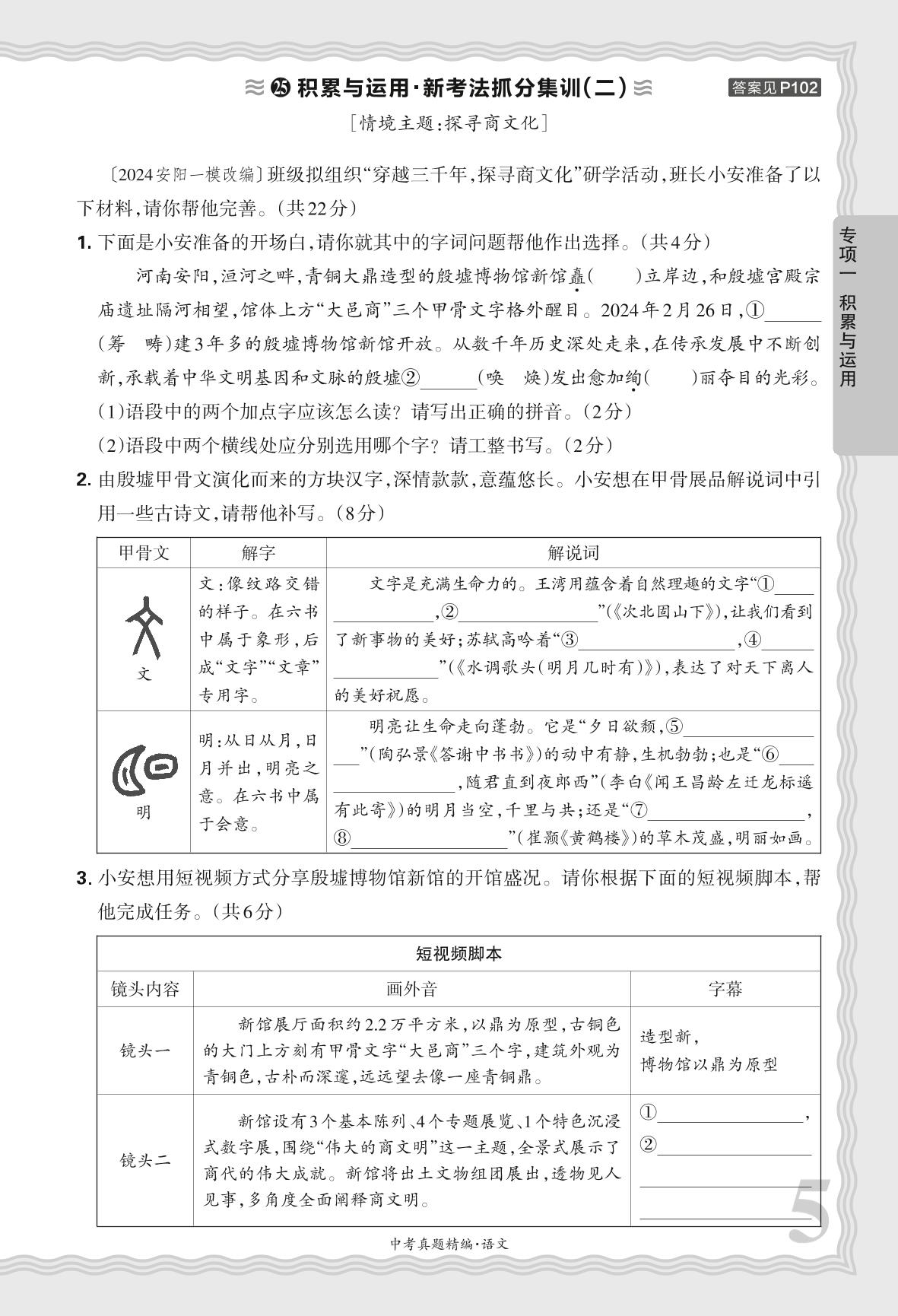 2025河南中考语文·专项一 积累与运用·新考法抓分集训(二)【25】