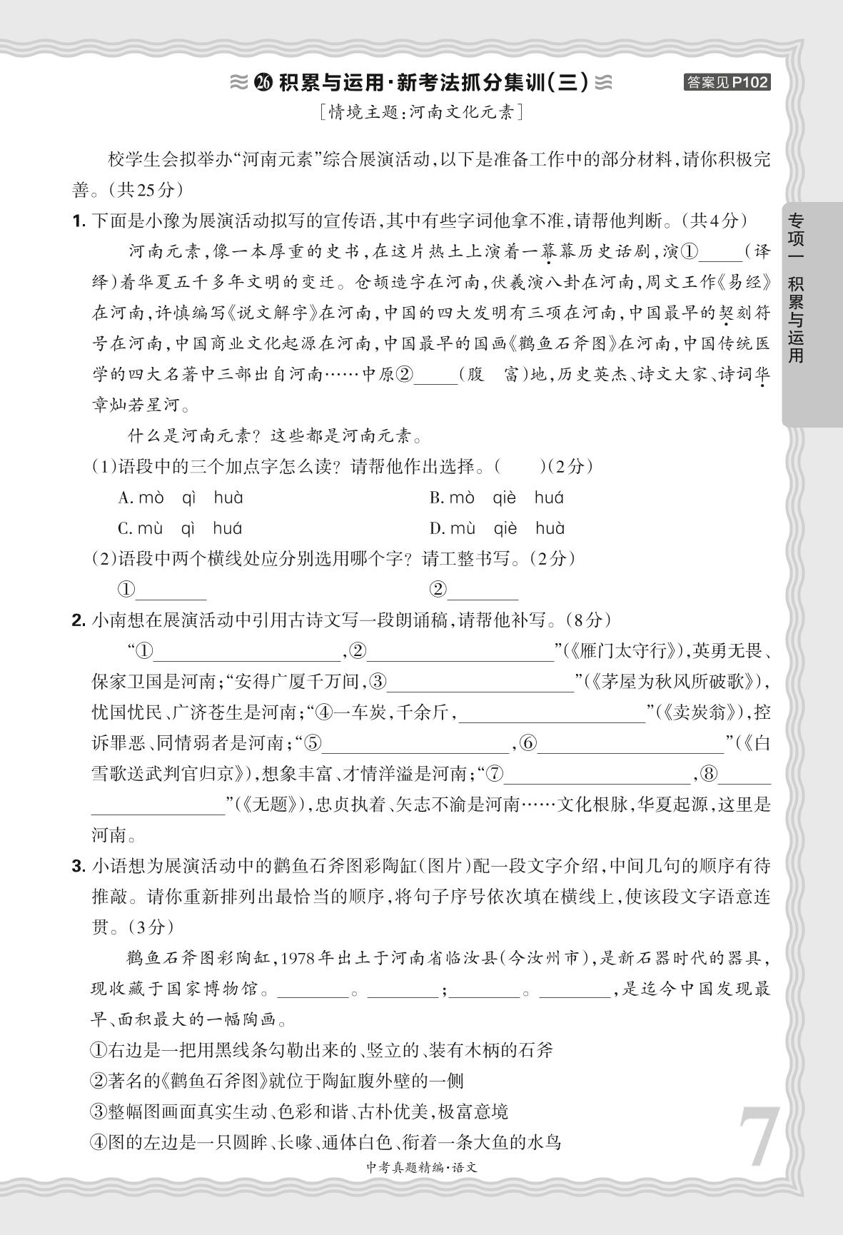 2025河南中考语文·专项一 积累与运用·新考法抓分集训(三)【26】