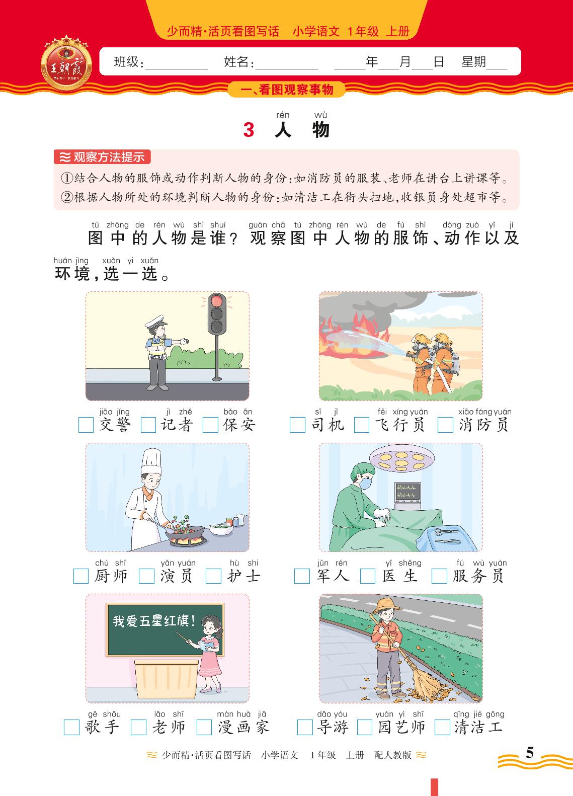 2024秋上册一年级语文人教版 看图写话一 观察事物——3. 人物