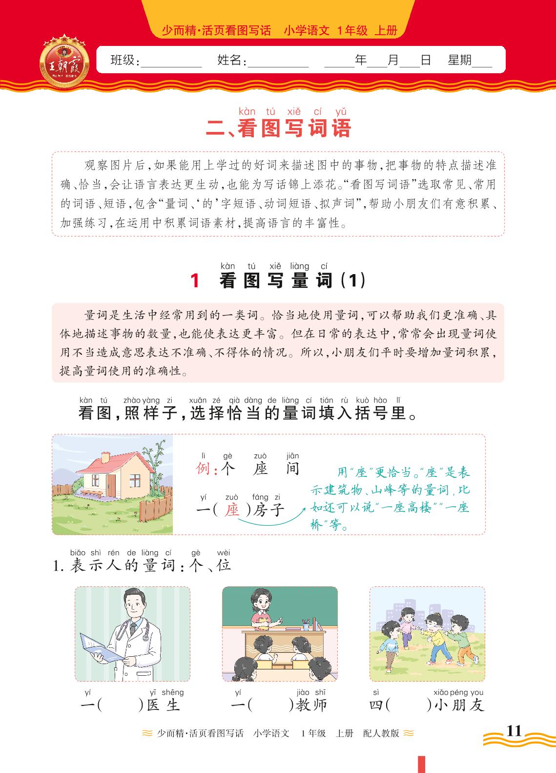 2024秋上册一年级语文人教版 看图写话二 写词语——1. 看图写量词(1)