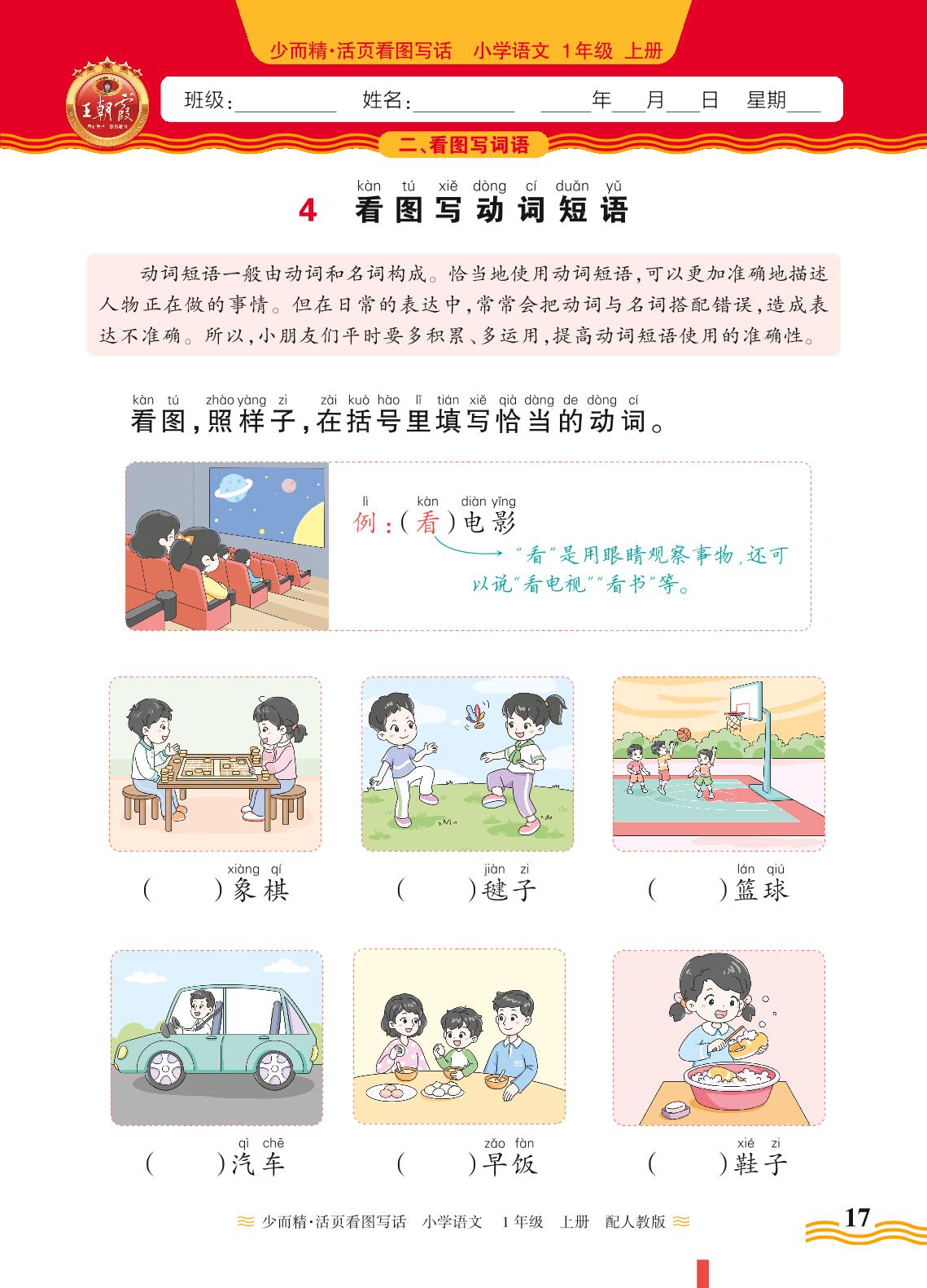 2024秋上册一年级语文人教版 看图写话二 写词语——4. 看图写动词短语