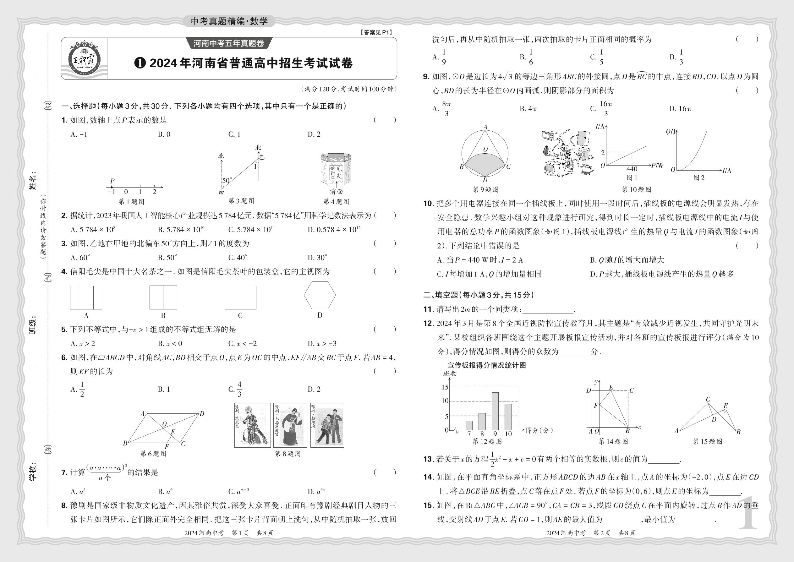 中考数学·2024年河南省普通高中招生考试试卷【1】
