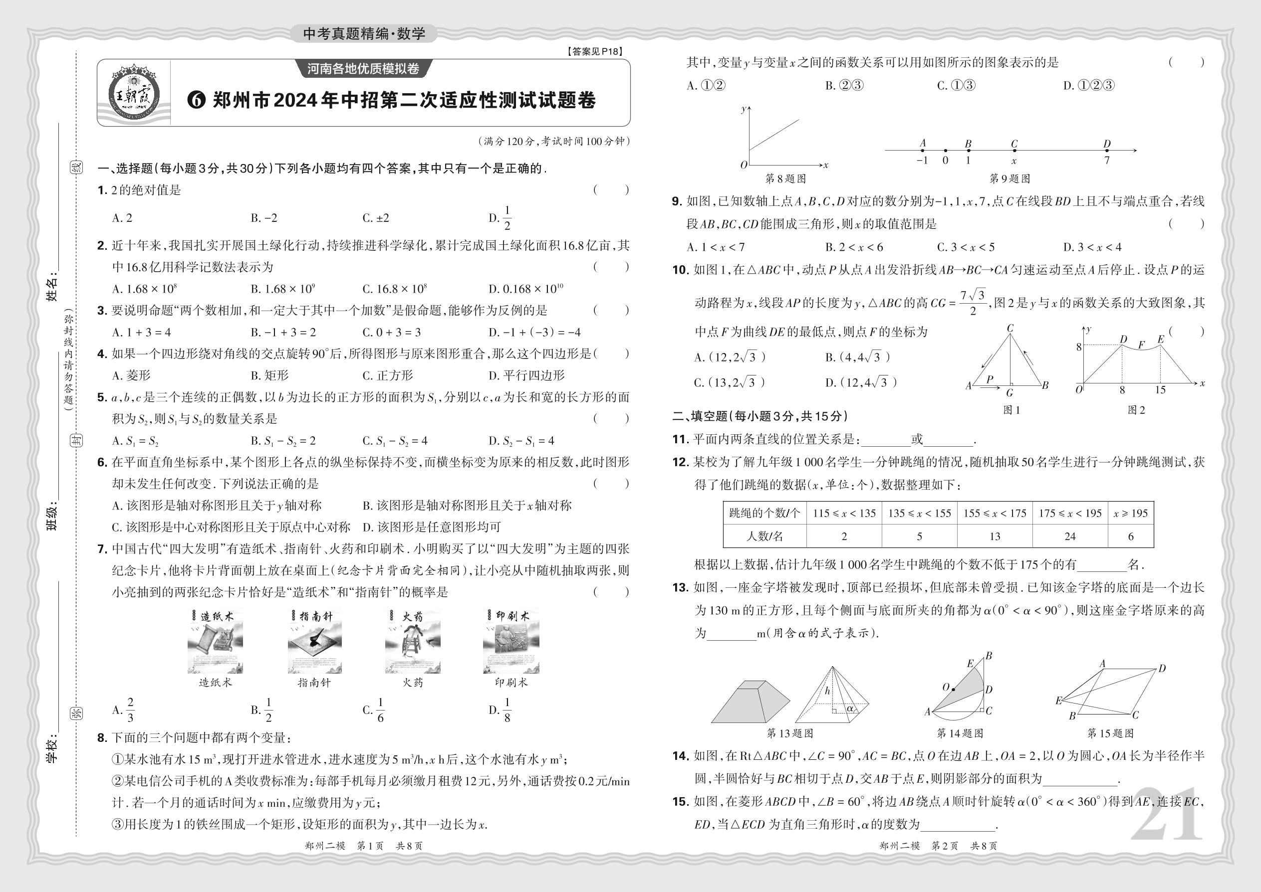 中考数学·河南省郑州市2024年中招第二次适应性测试试题卷【6】